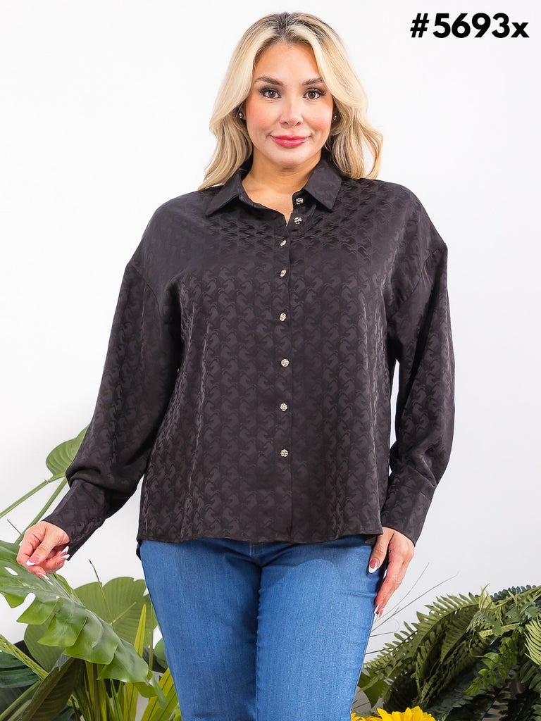 "Dressed For Comfort" Plus Satin Button Down Long Sleeve Top