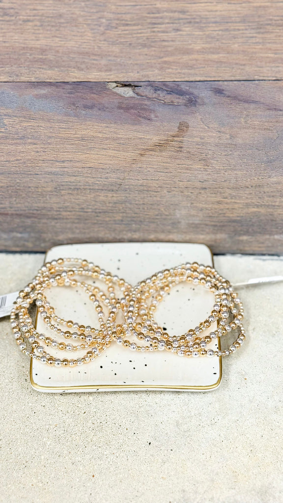 "Layered Looks" Silver & Gold Beaded Stretch Bracelet