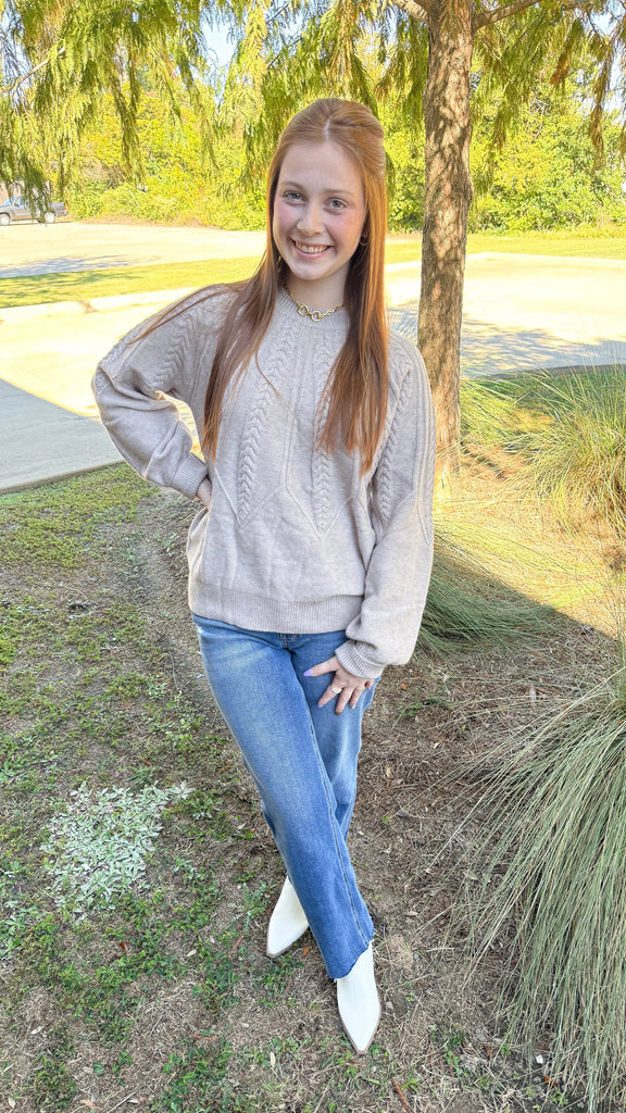 "Sweet On Style" Crew Neck Cable Knit Sweater Top