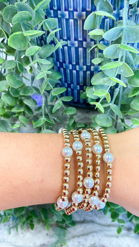 "Yours Always" Gold Beaded & Pearl Stretch Bracelet