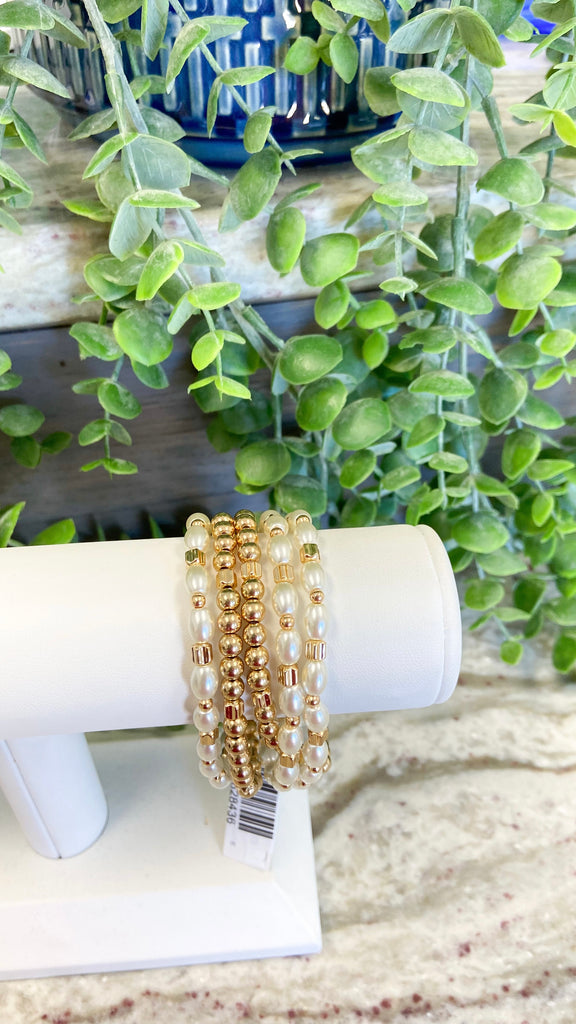 "Bold Statements" Pearl and Gold Bracelet Set