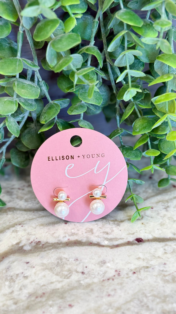 Ellison + Young "Think Chic" Golden Bar & Pearl Stud Earrings