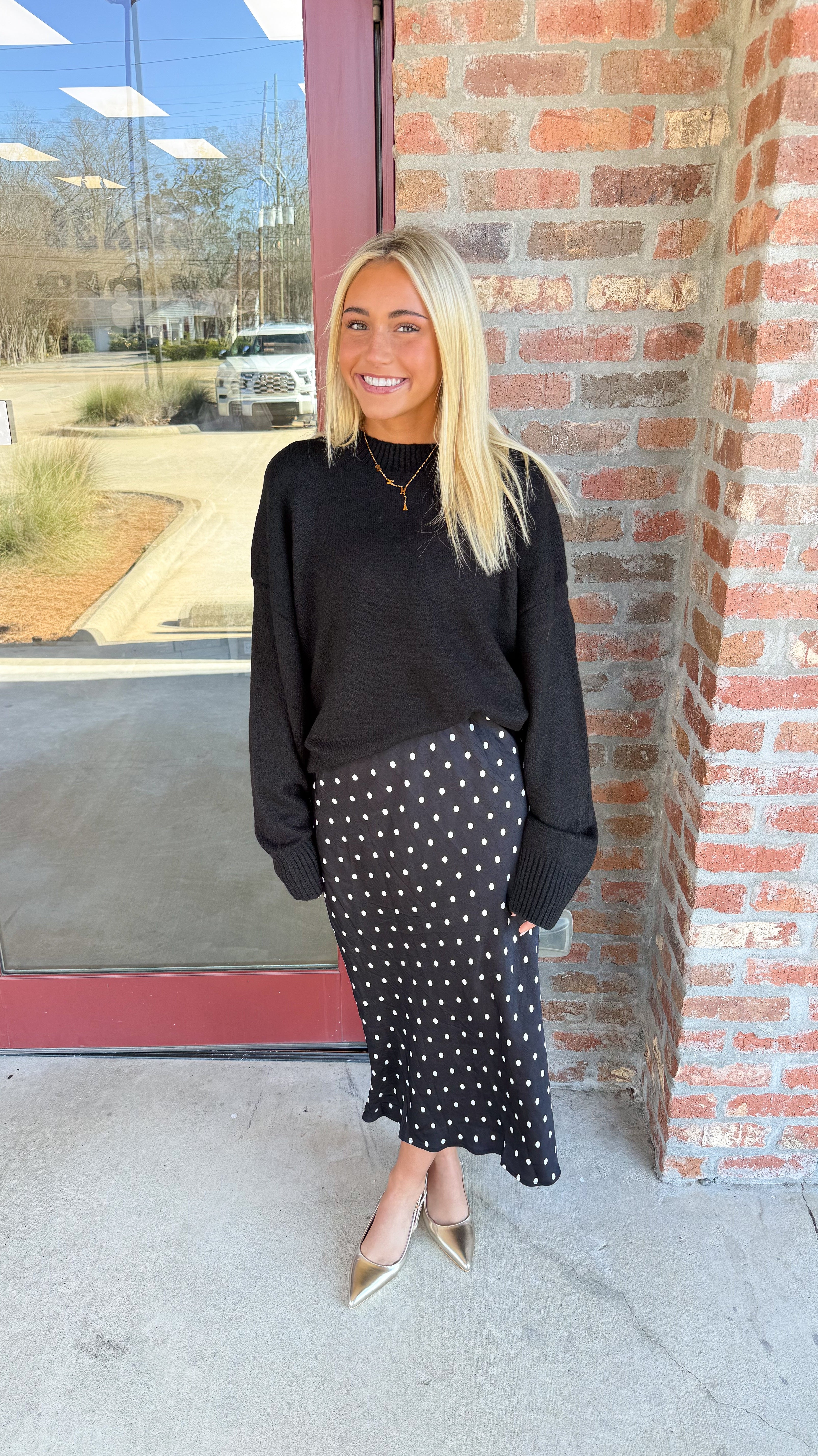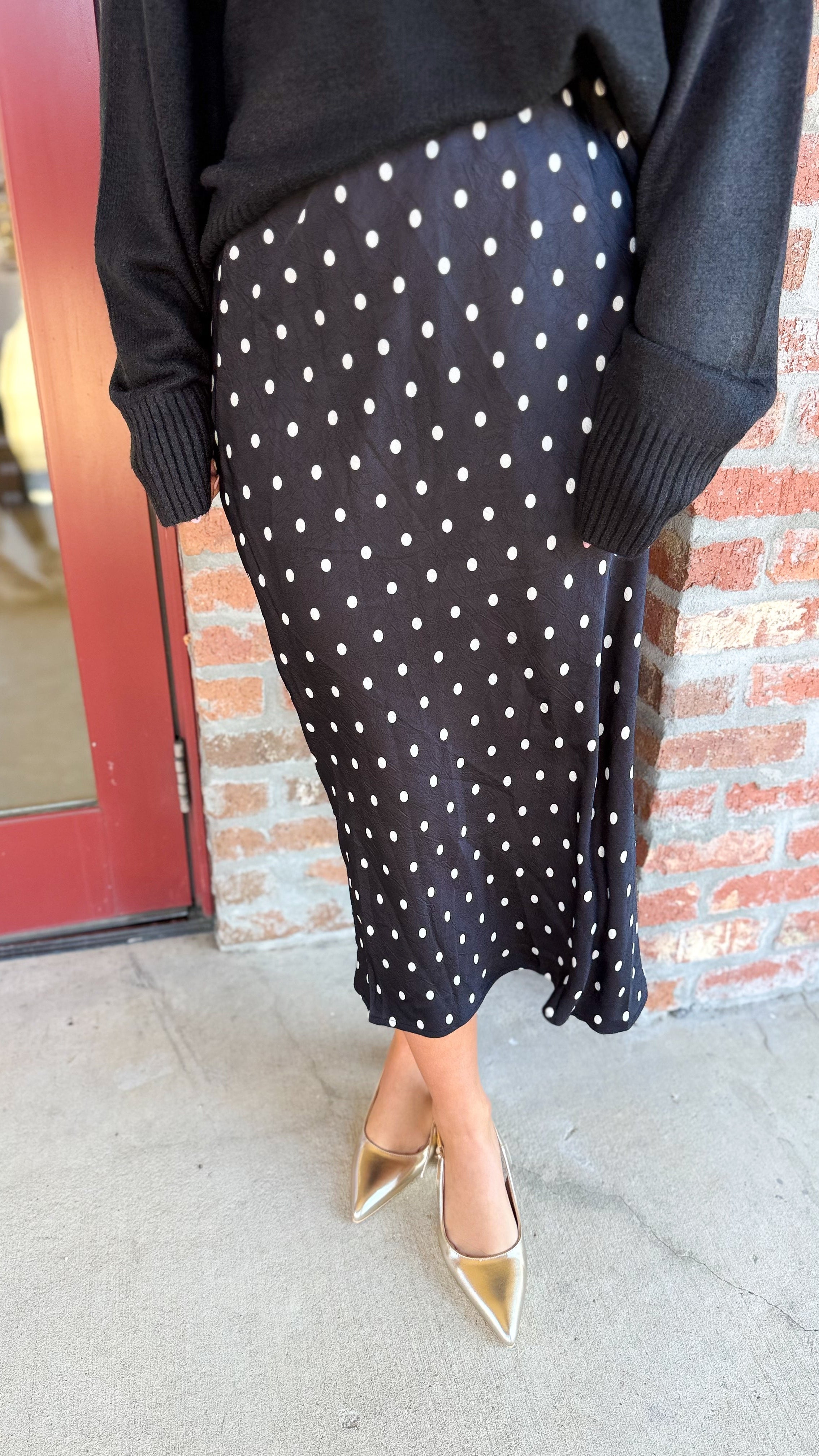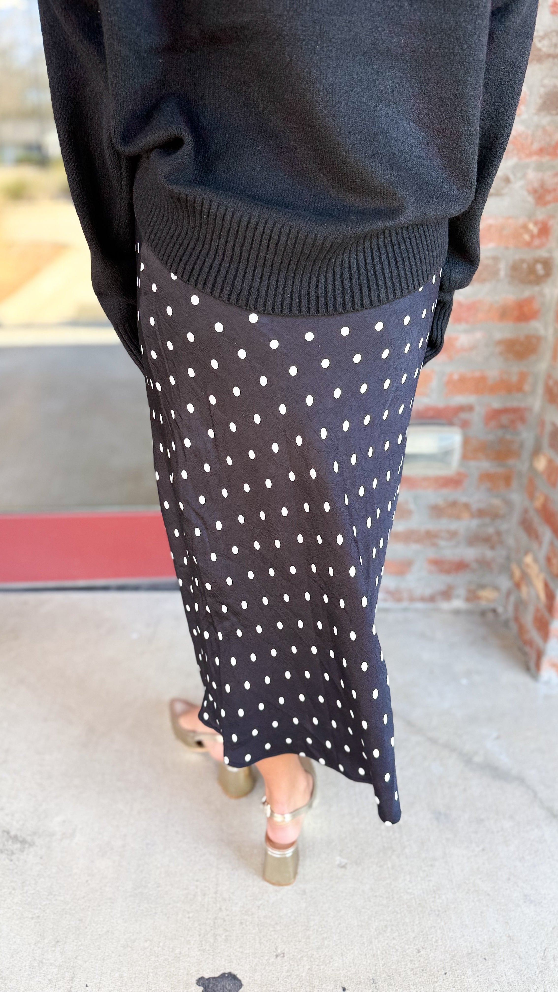 "Chasing Nights" Polka Dot Satin Maxi Skirt