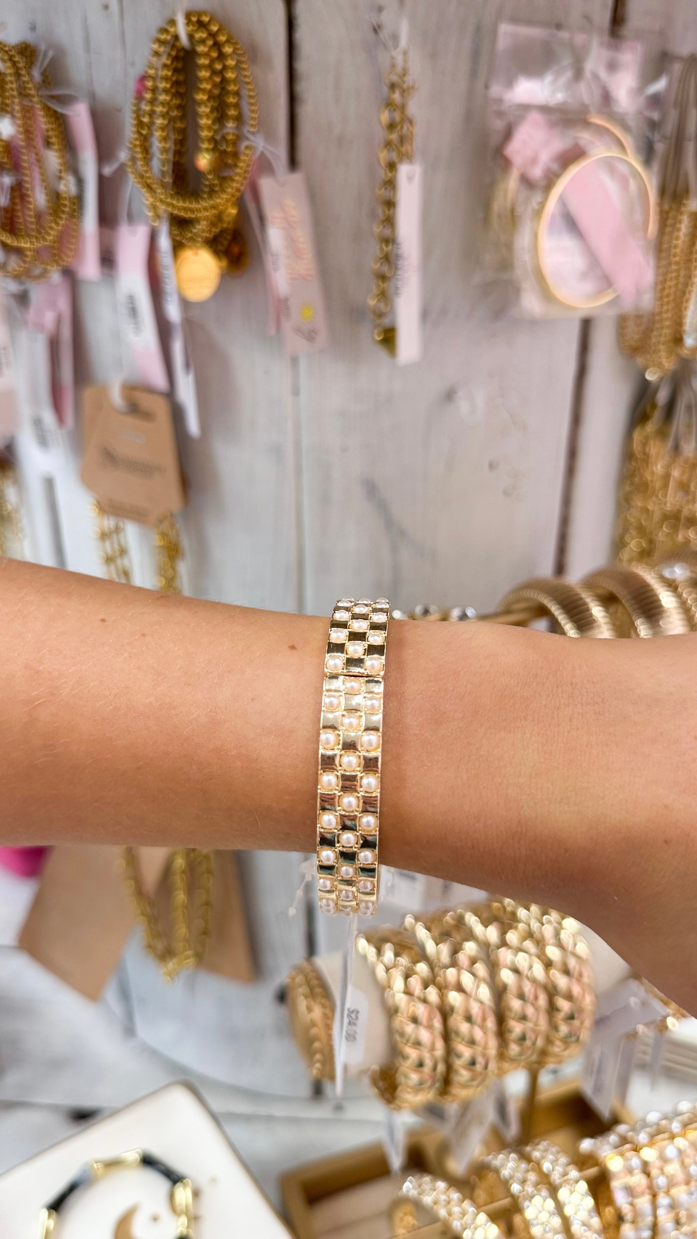 "By The Way" Pearl Squared Stretch Bracelet