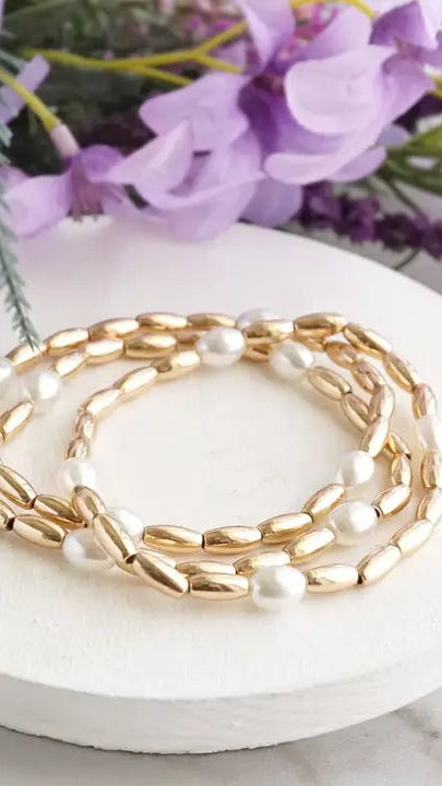 "Right On Time" Beaded Bracelet Stack Set of 3
