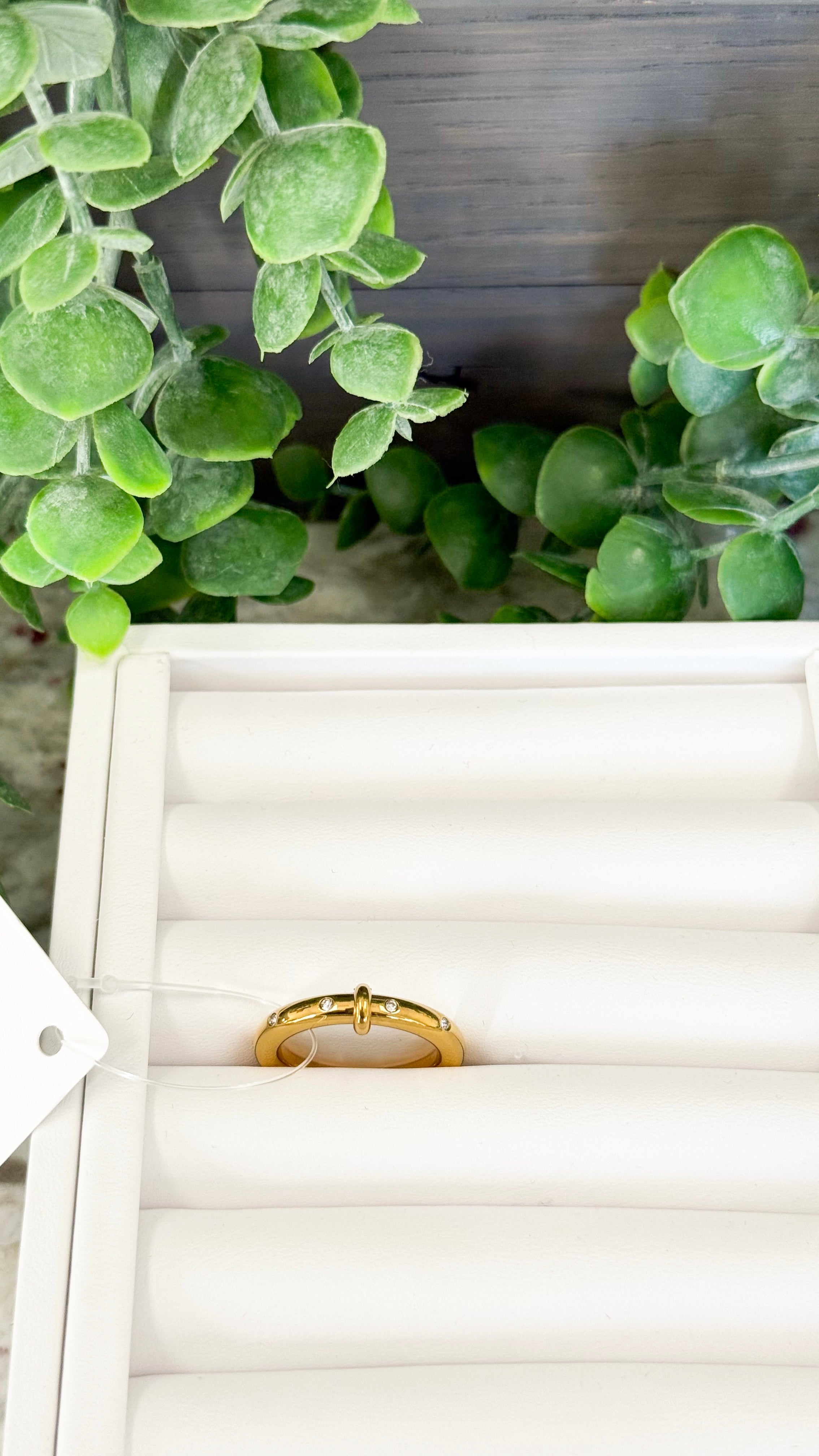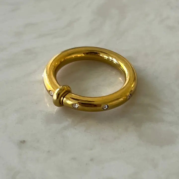 This ring is water-resistant and 18K gold plated stainless steel, ensuring durability and long-lasting shine.