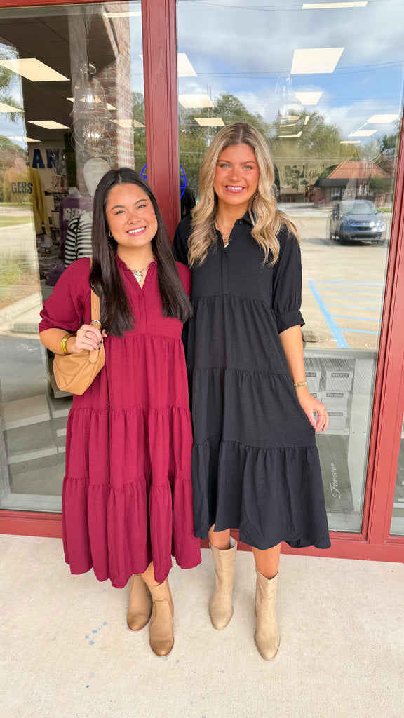 "Too Pretty Tonight" Collared Button Down Tiered Maxi Dress