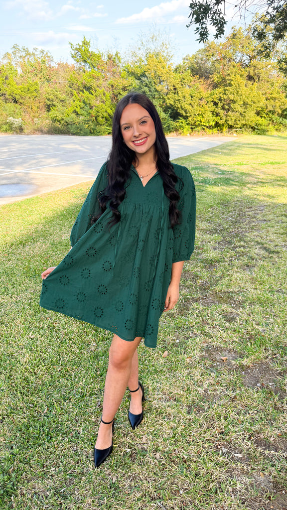 "Own It" Embroidered Eyelet Puff Sleeve Mini Dress