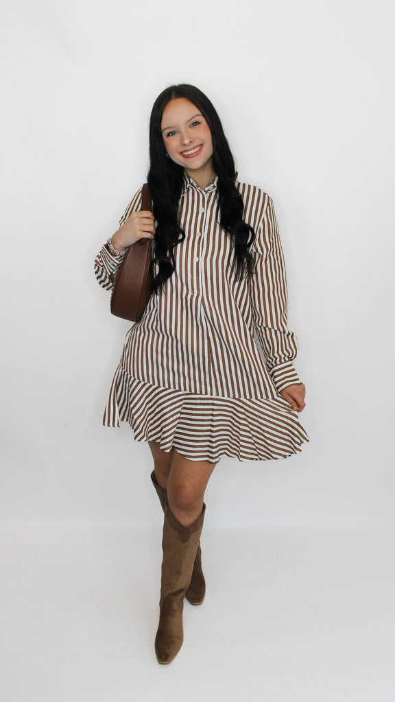 "Time To Go" Striped Long Sleeve Shirt Mini Dress