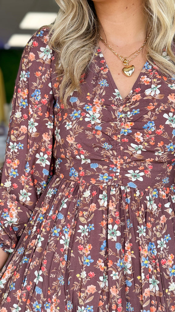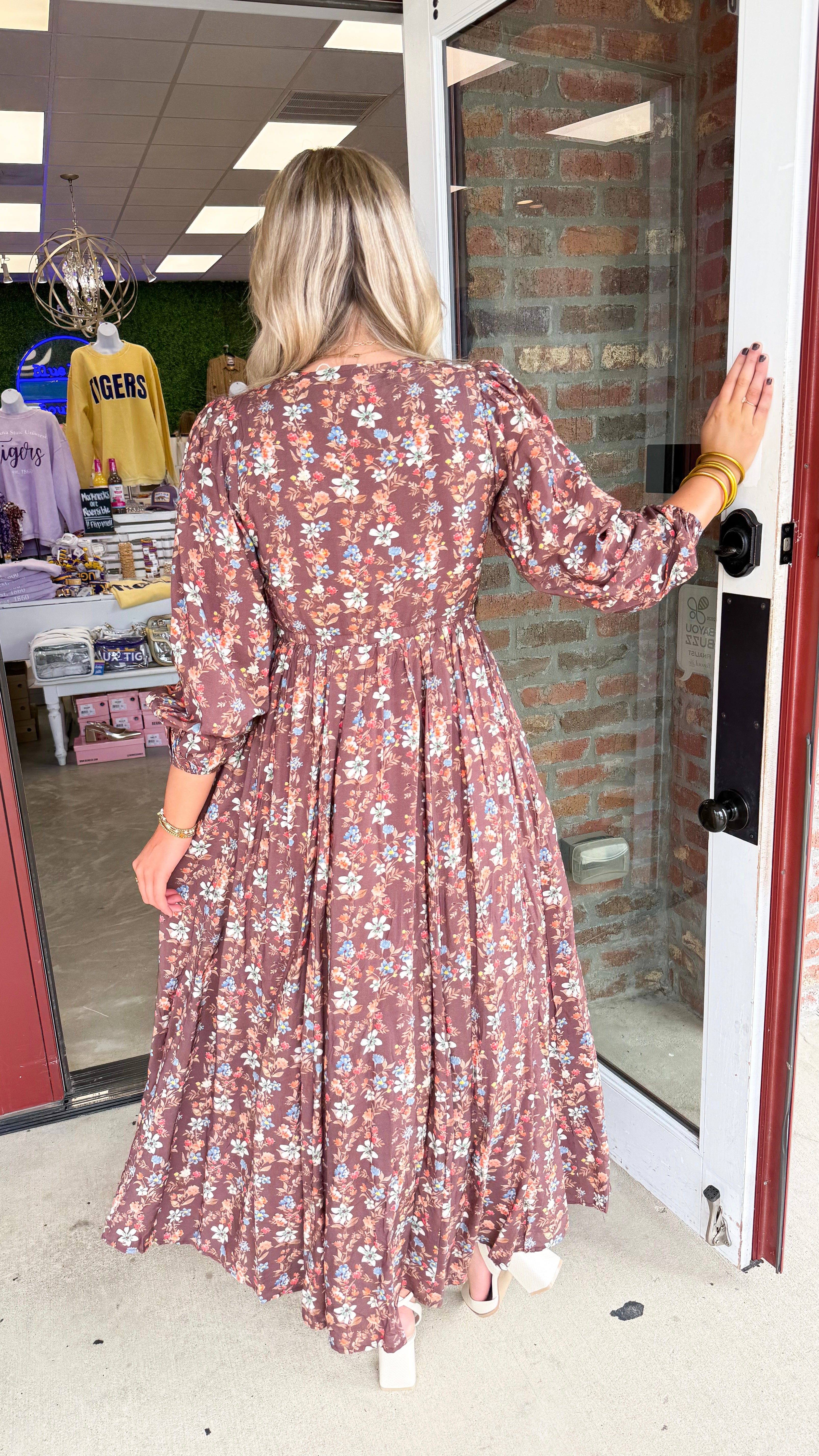 "Changed My Mind" V Neck Floral Long Sleeve Maxi Dress
