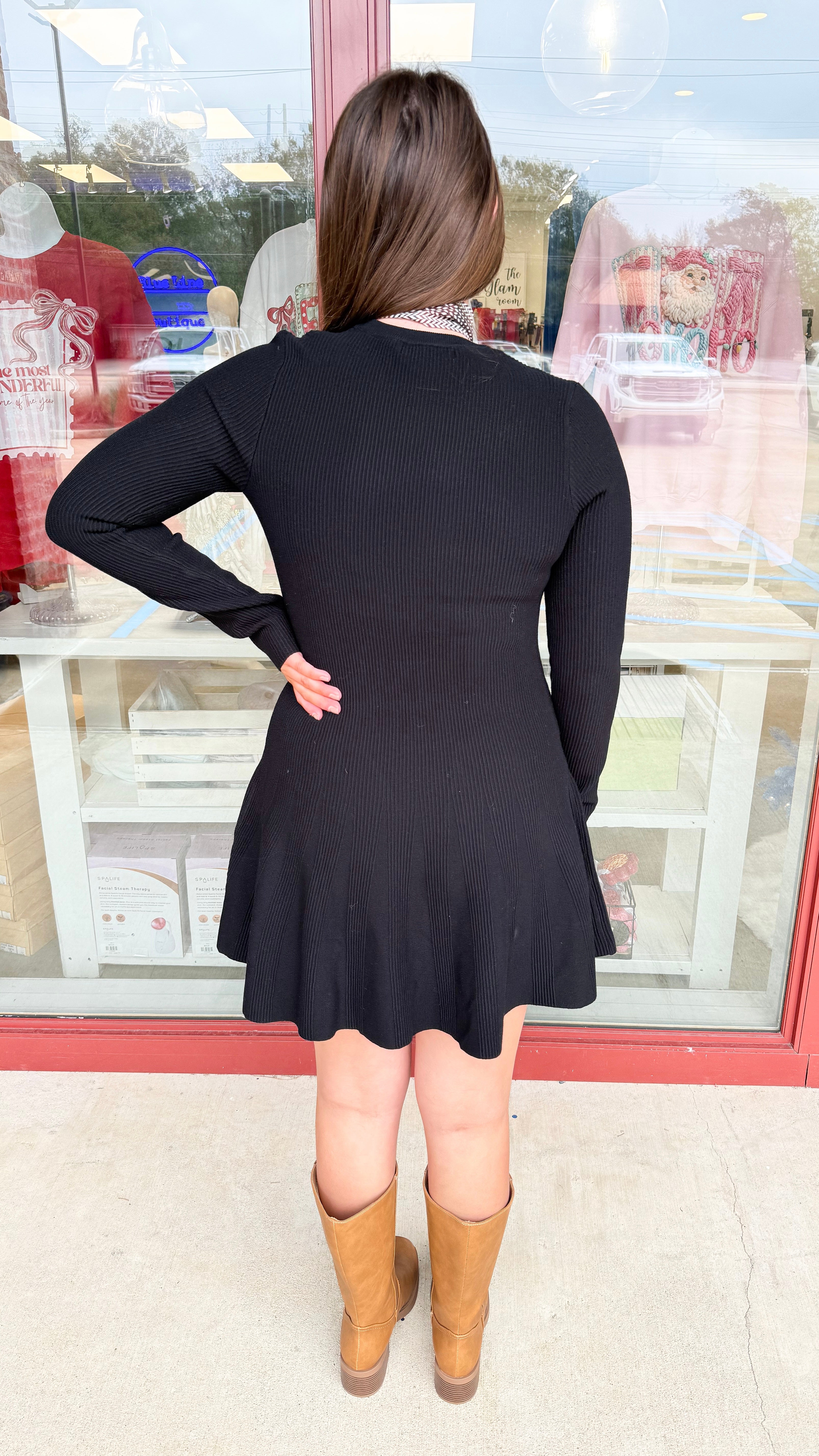 "Think About It" Pleated Sweater Knit Long Sleeve Dress