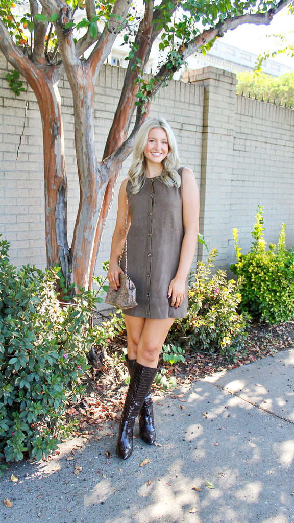 "Own The Day" Round Neck Sleeveless Button Down Mini Dress