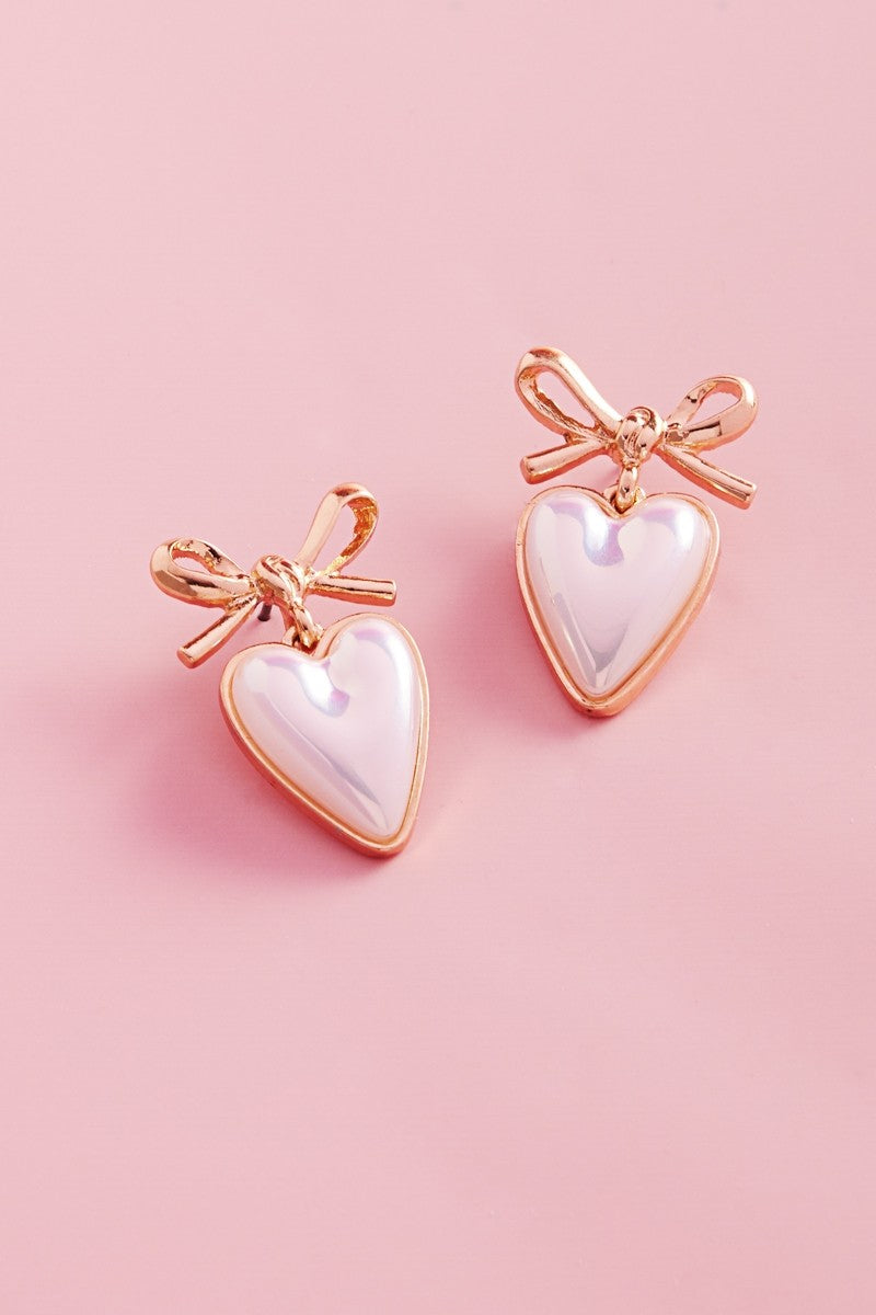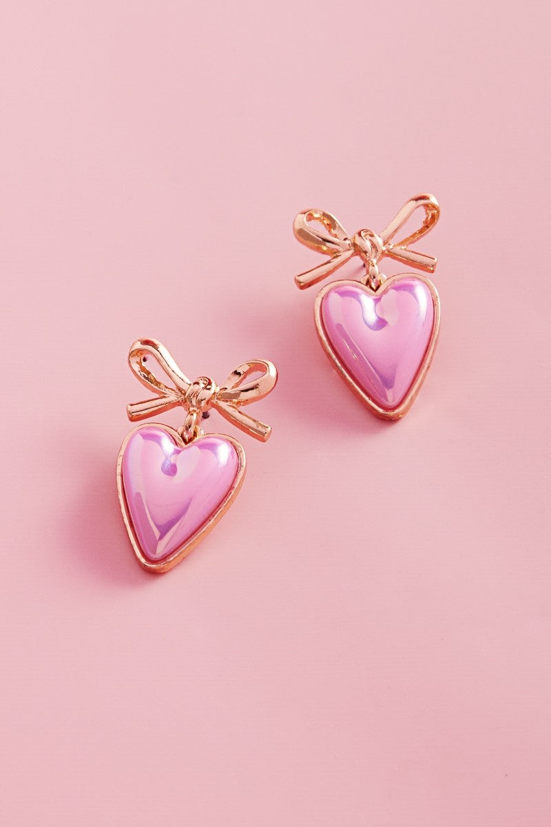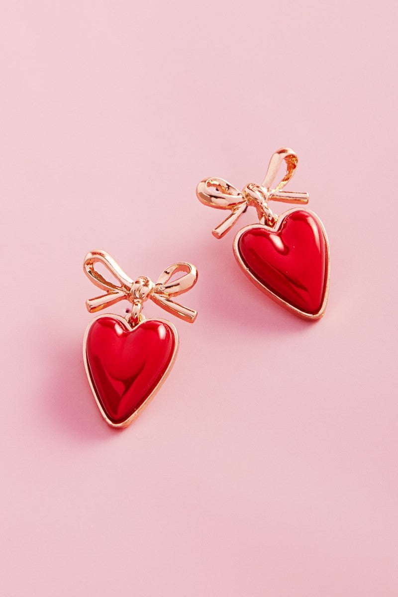 "Double Take" Valentines Day Bow Heart Earrings