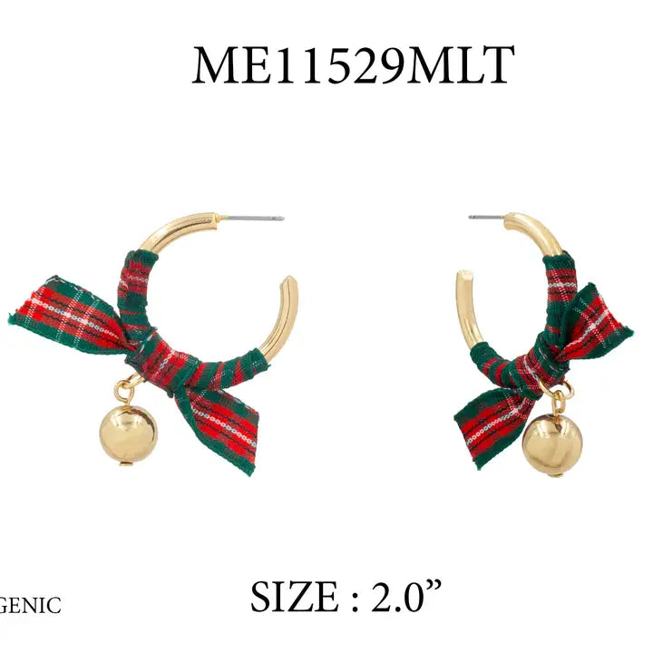 "Feeling Festive" Christmas Gold Hoop Ribbon Earrings