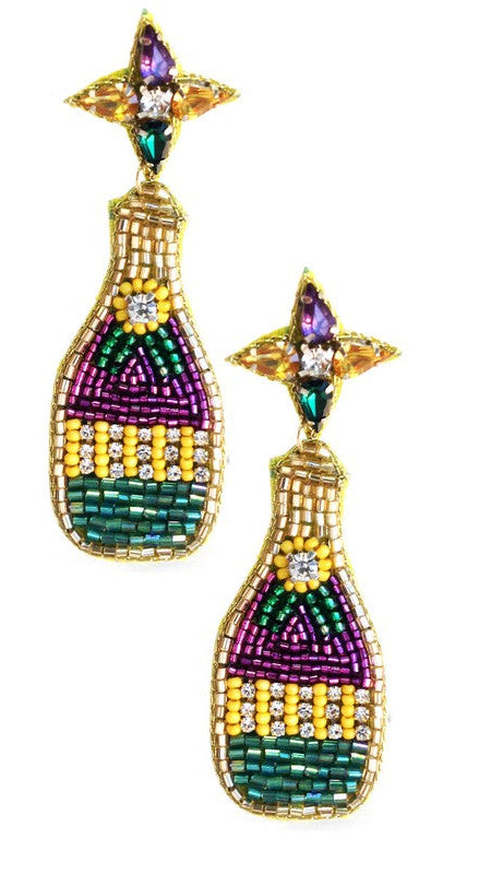 "Hurricane" Mardi Gras Seed Bead Bottle Earrings