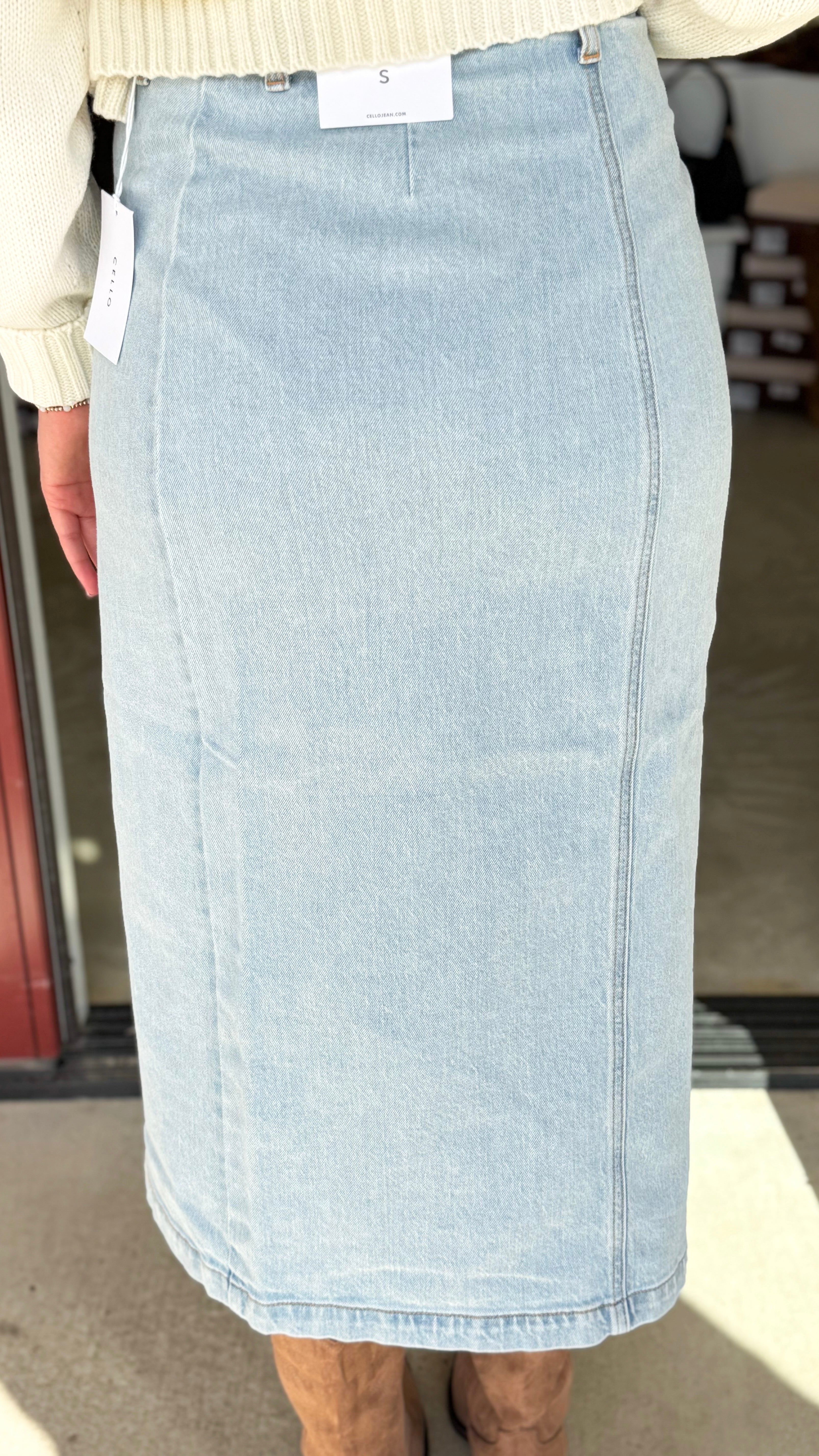 "Fall Nights" High Rise Denim Midi Skirt