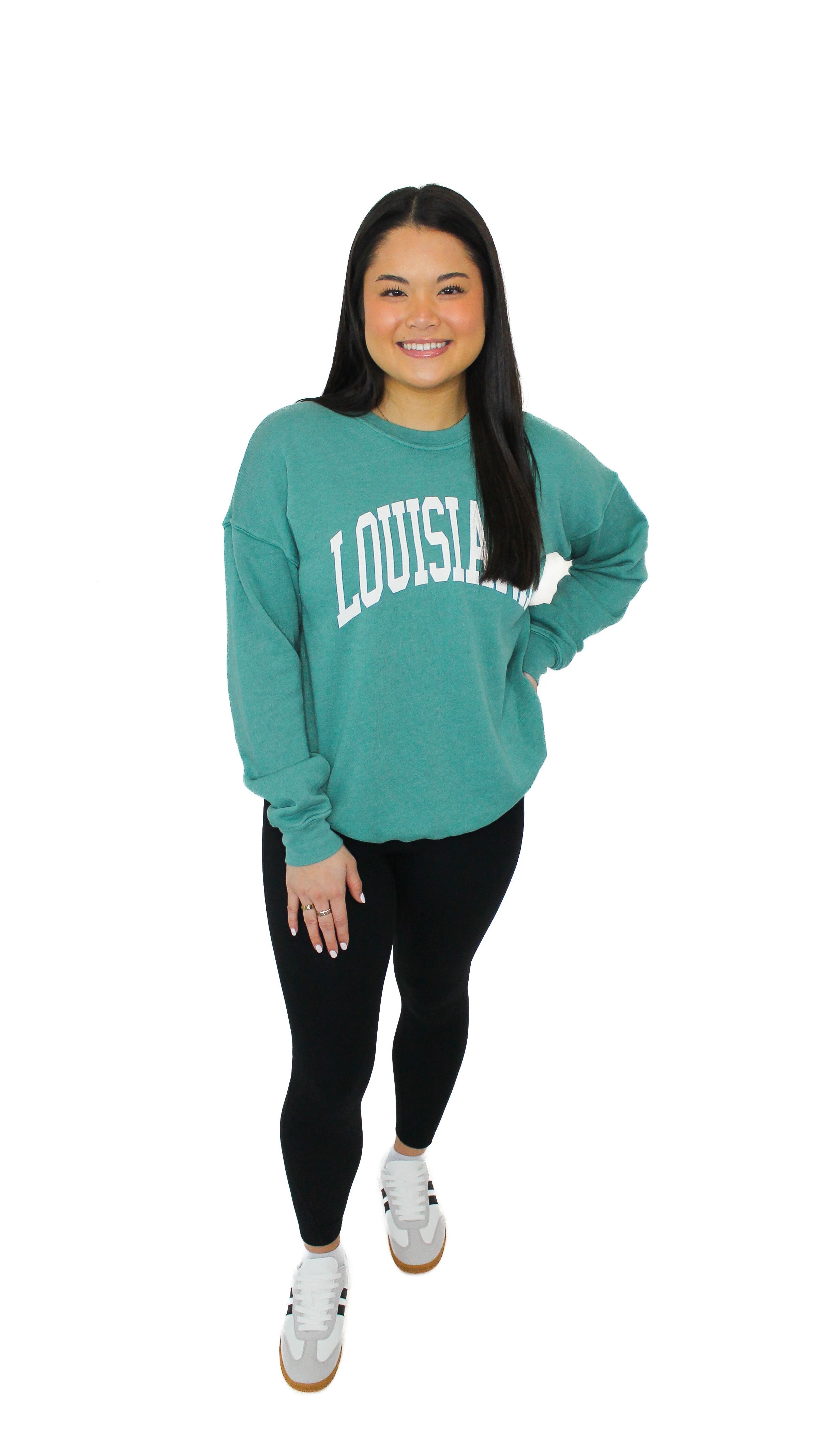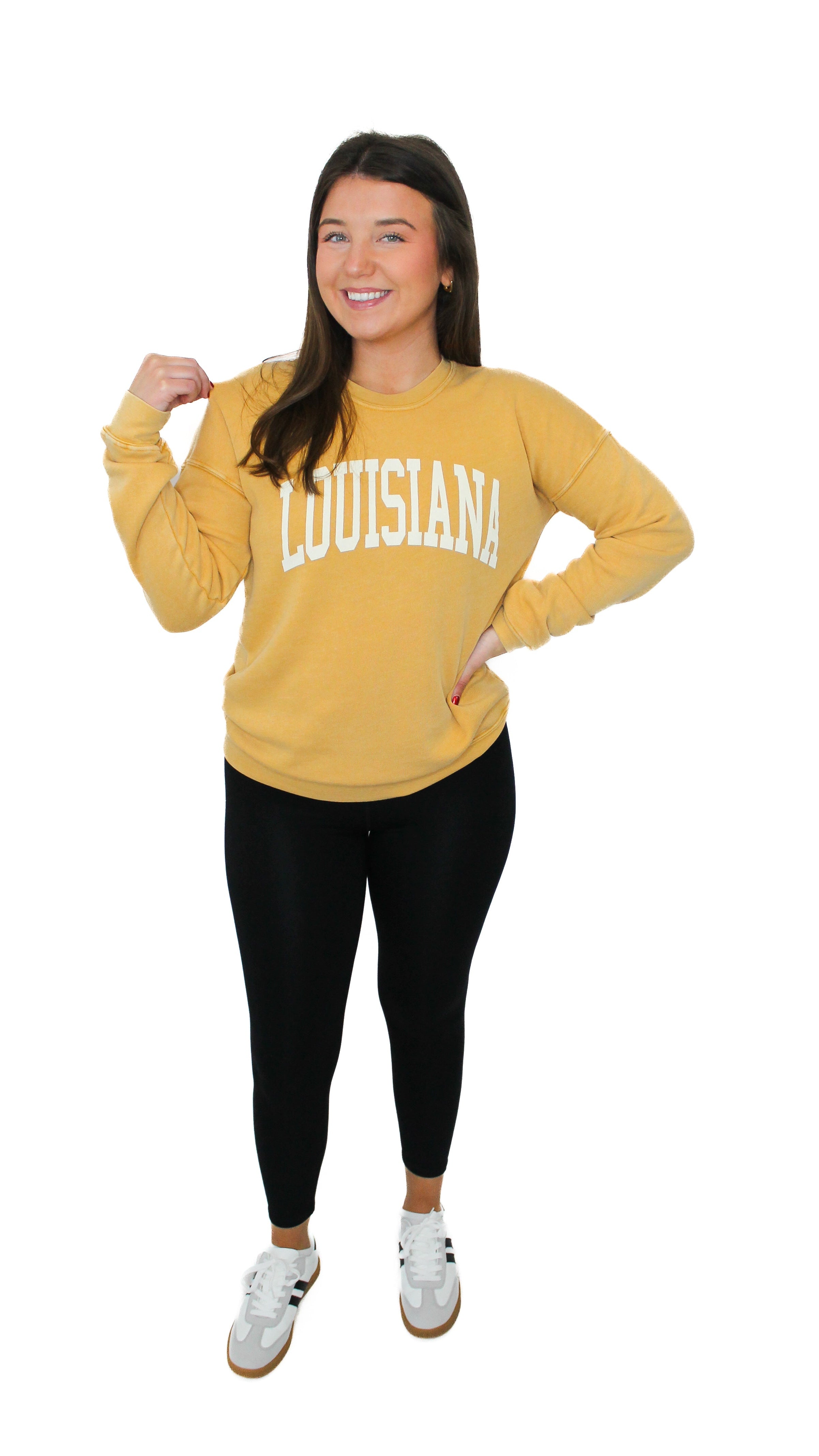 "Louisiana" Crew Neck Mineral Graphic Long Sleeve Sweatshirt
