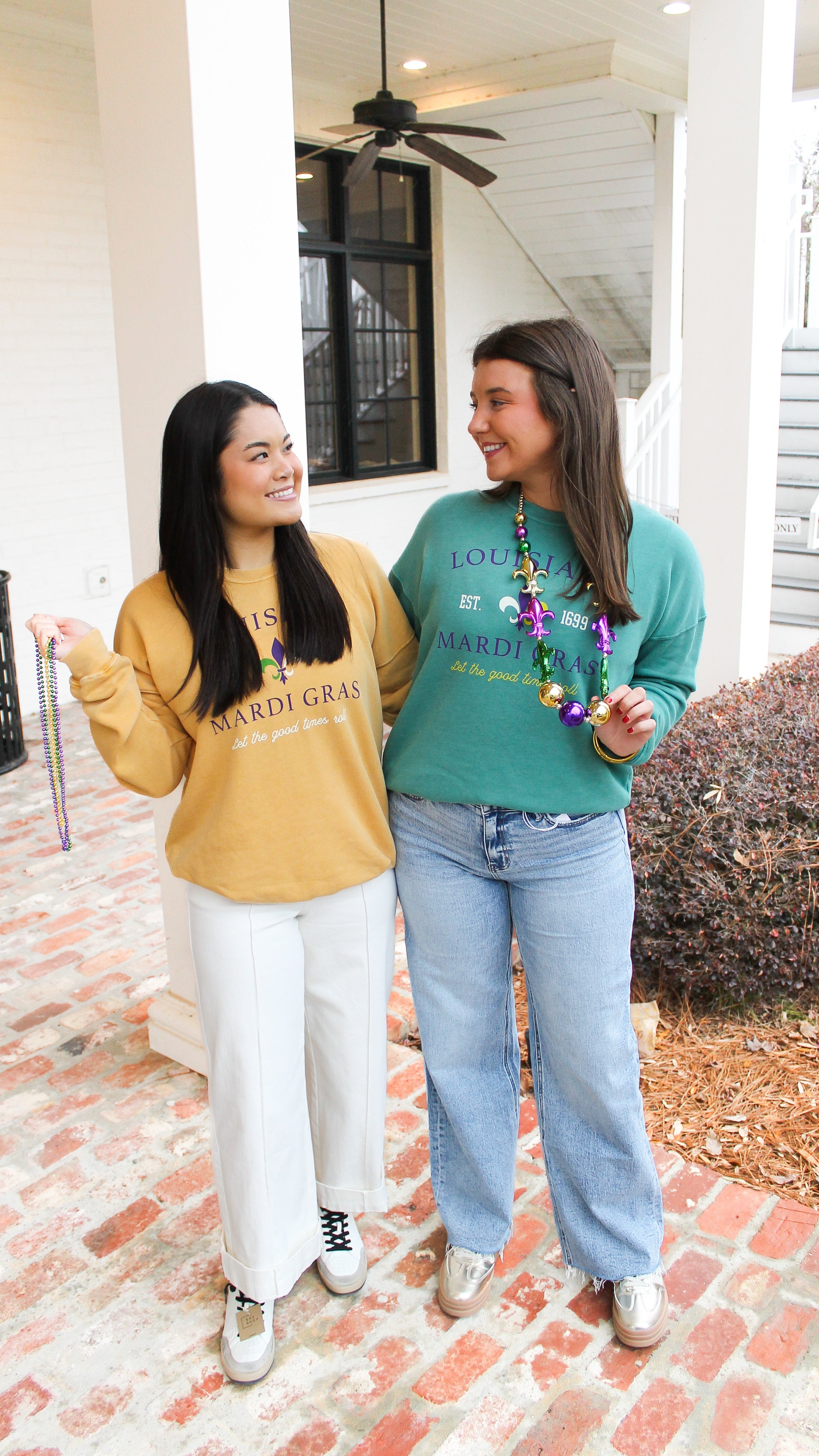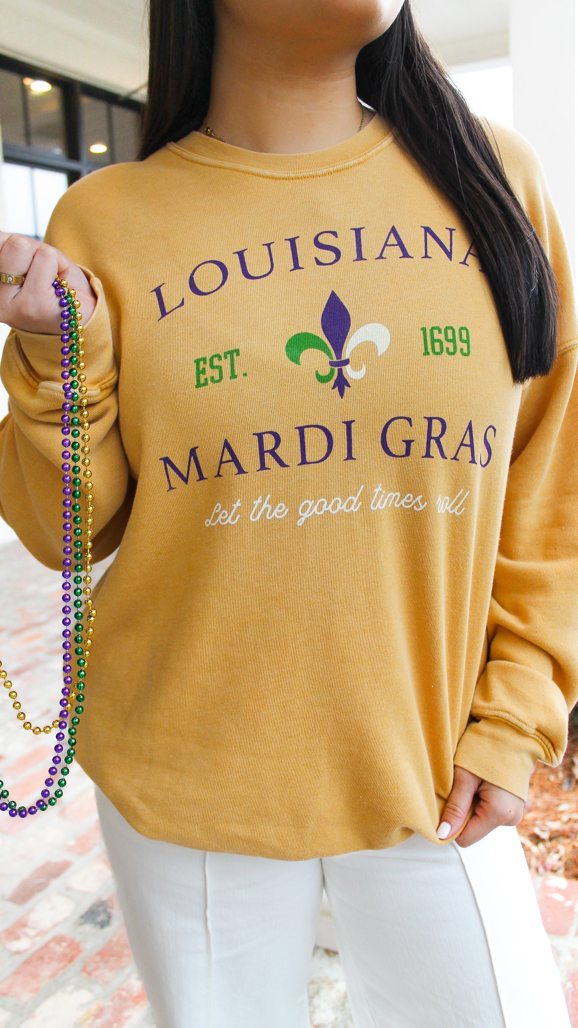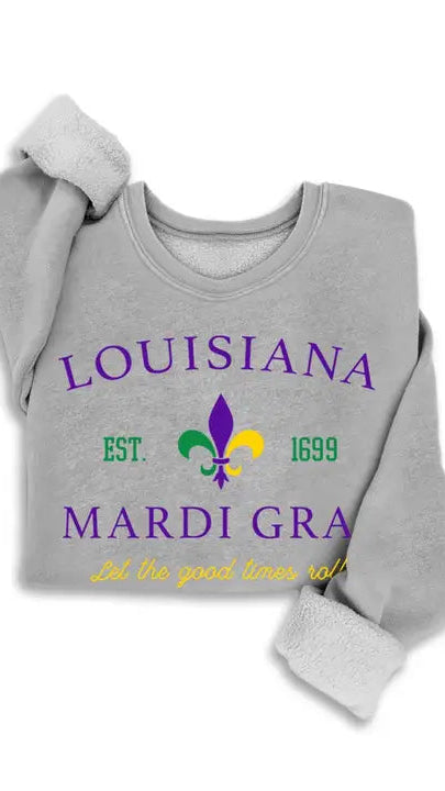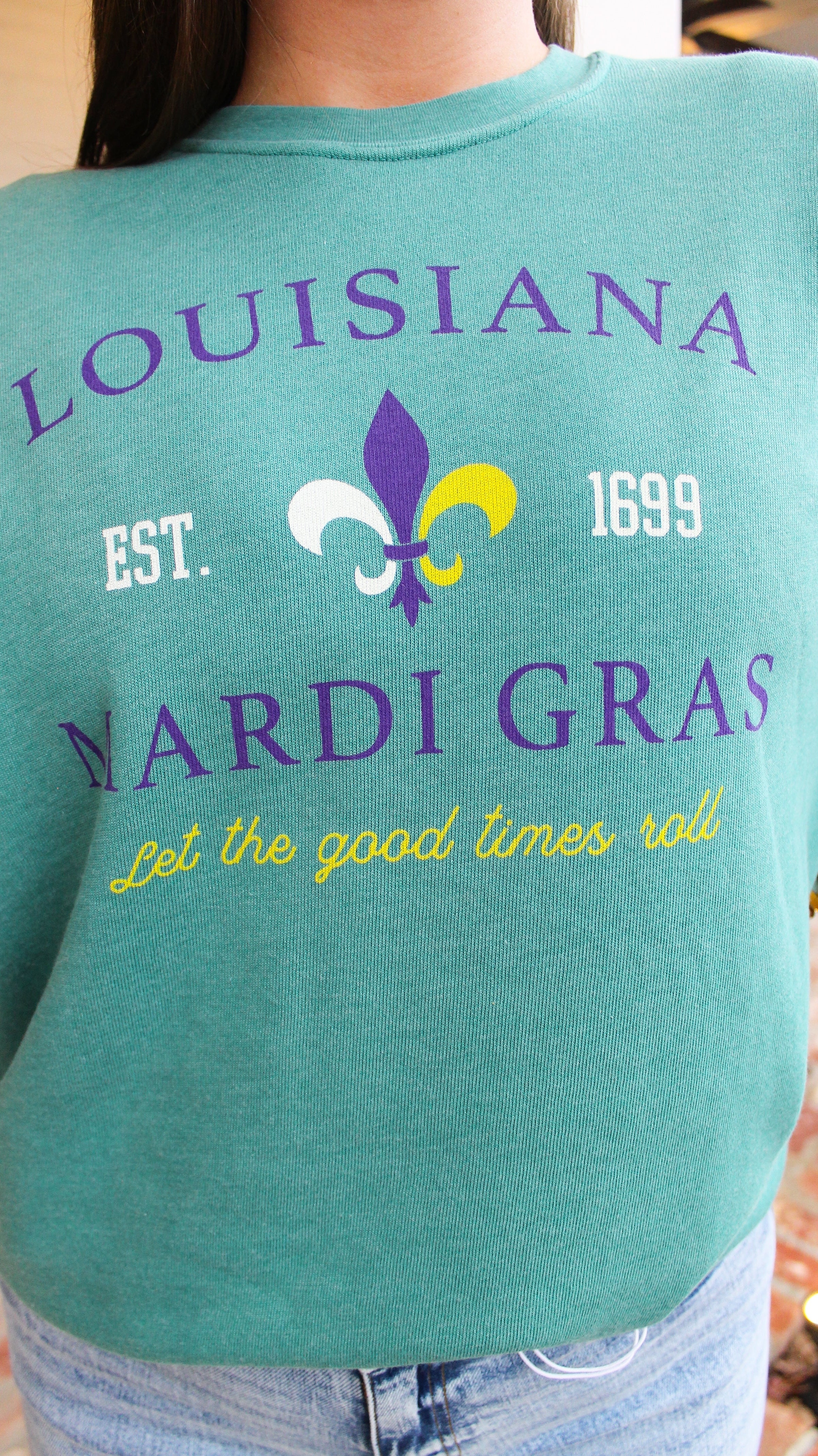 "Louisiana Mardi Gras" Crew Neck Mineral Graphic Long Sleeve Sweatshirt