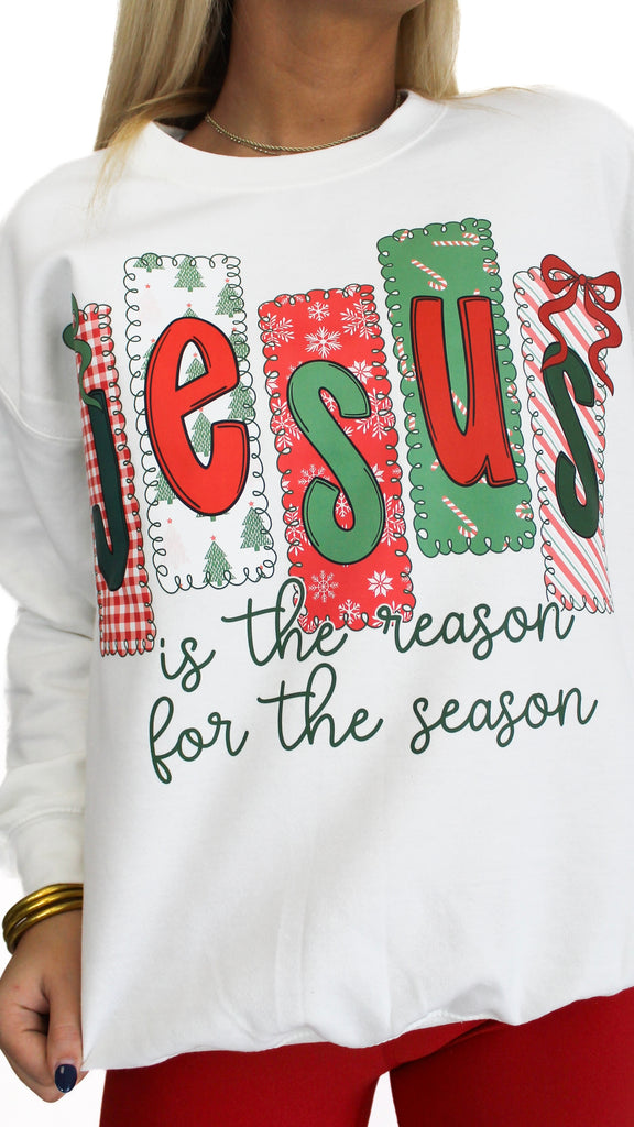 "Jesus Blocks with Bows" Graphic Long Sleeve Sweatshirt