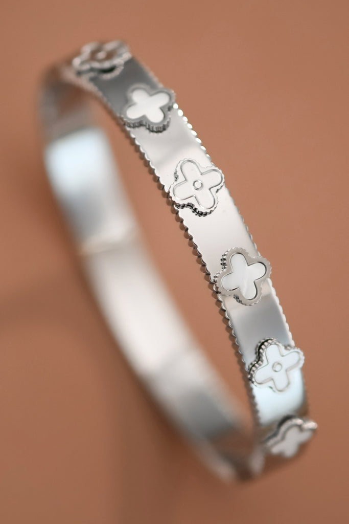 "Fine By Me" Clover 18K Stainless Steel Bangle Bracelet