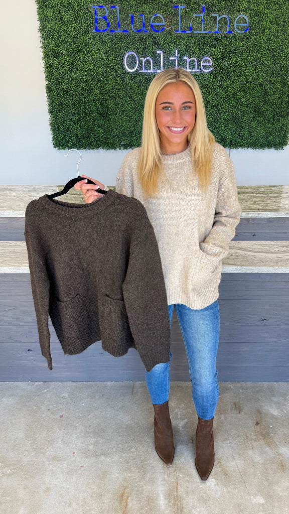"Give It All" Front Patch Pocket Long Sleeve Sweater