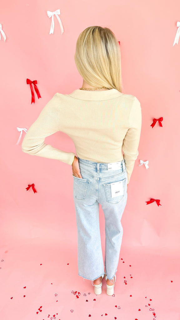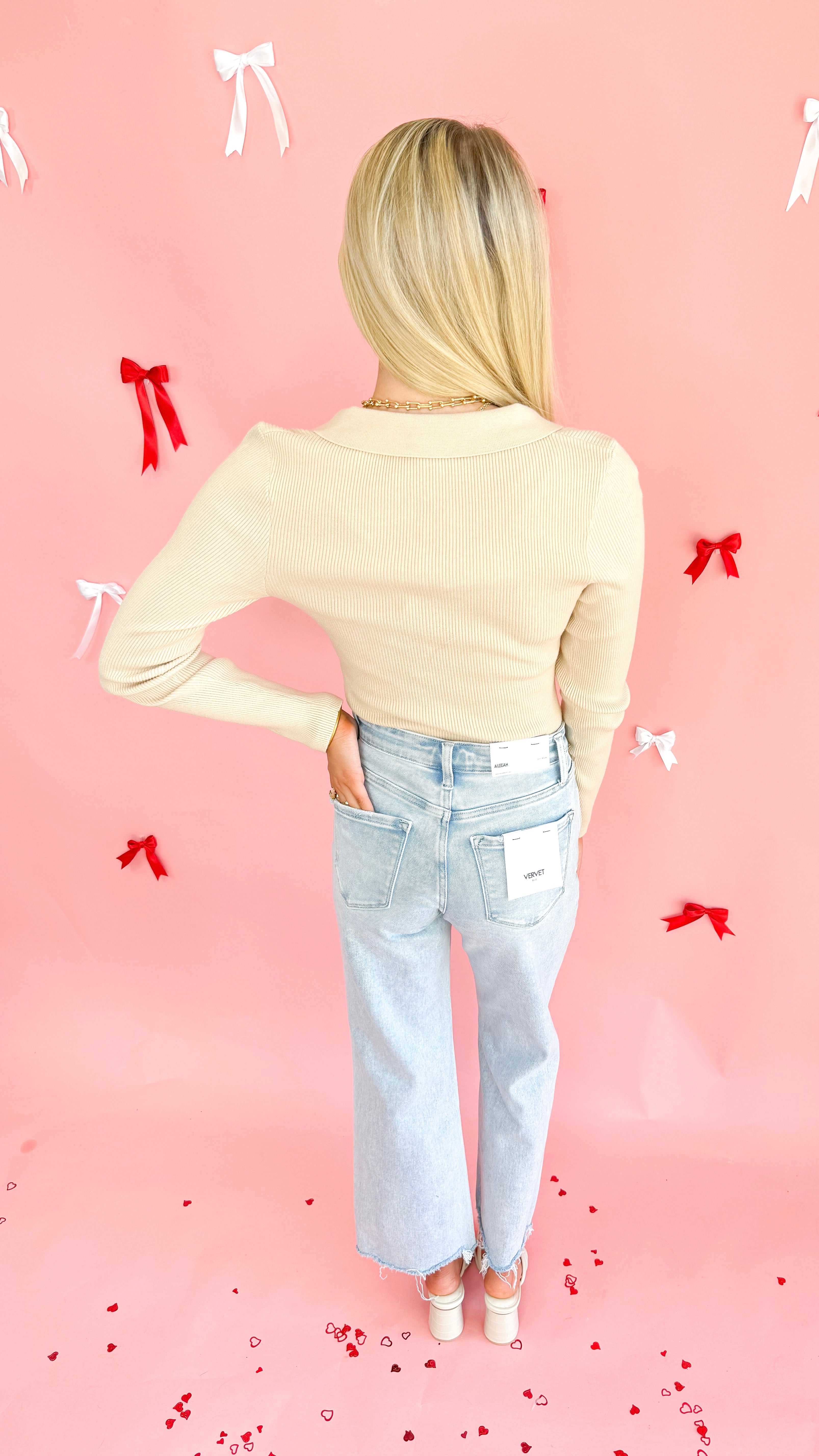 "Count On Me" Ribbed Collared Sweater Top