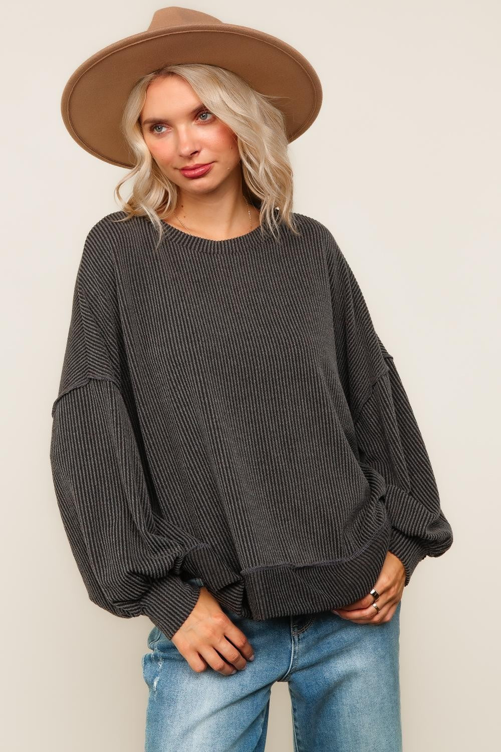 "Found Me" Ribbed Drop Shoulder Long Sleeve Sweater Top