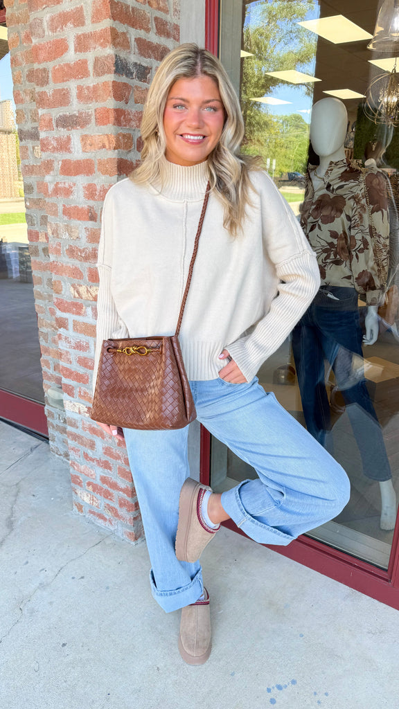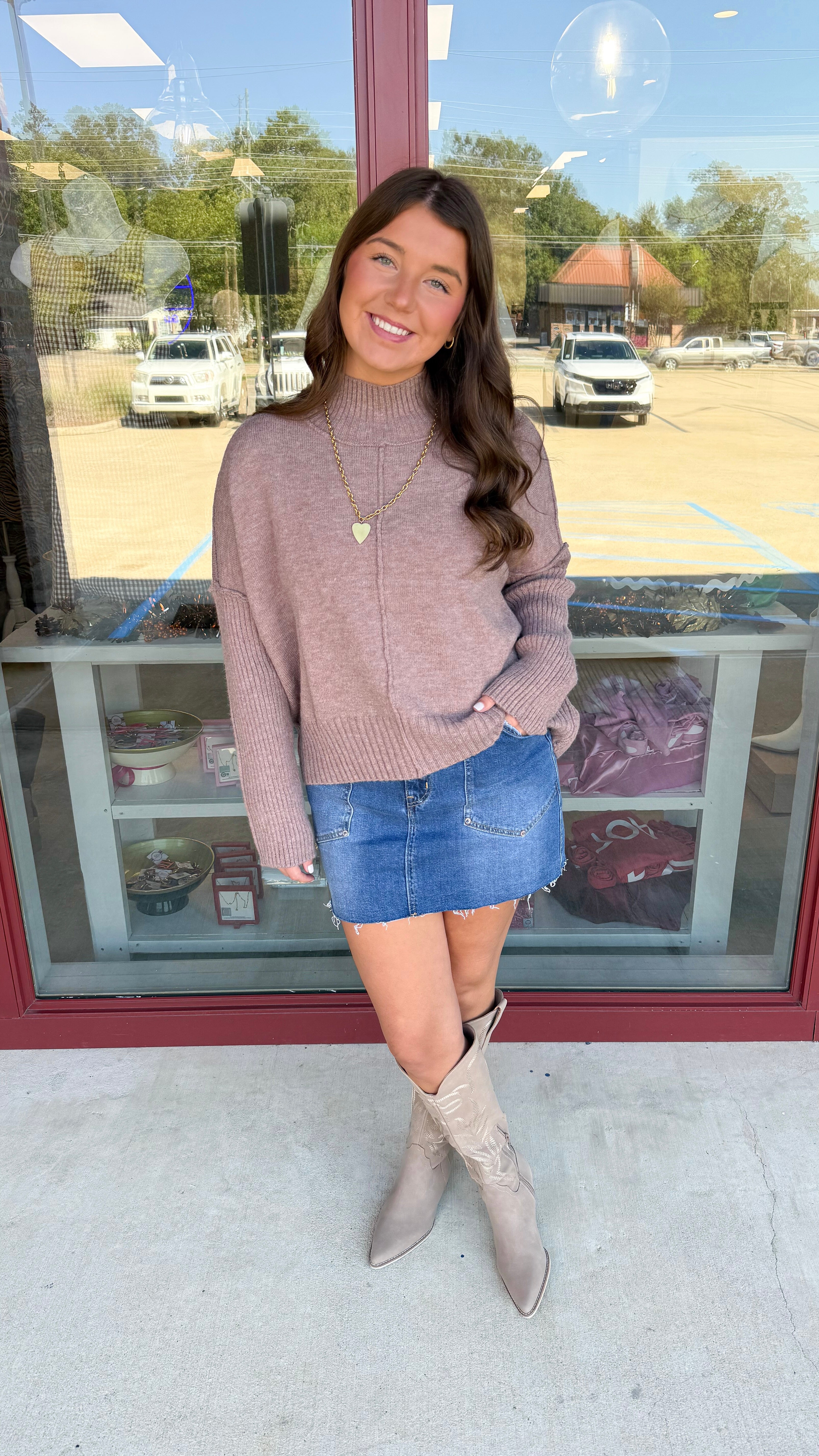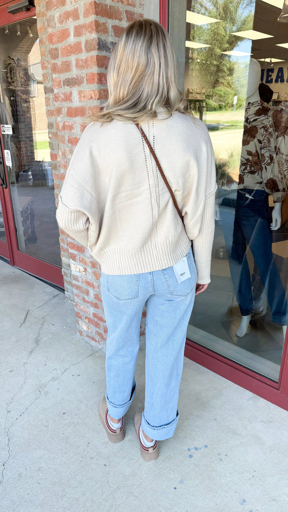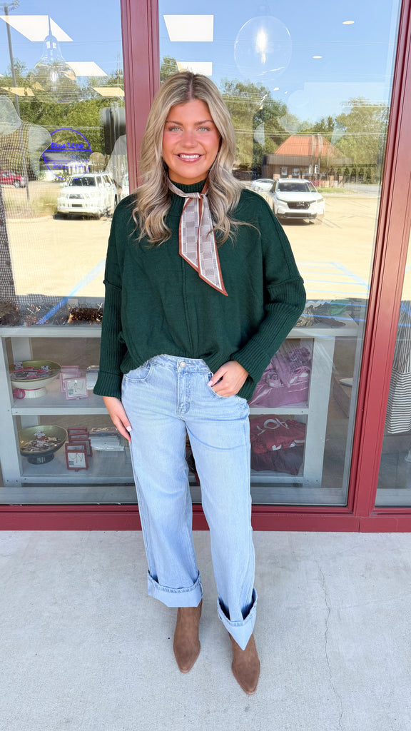 "Have A Great Day" High Neck Long Sleeve Sweater Top