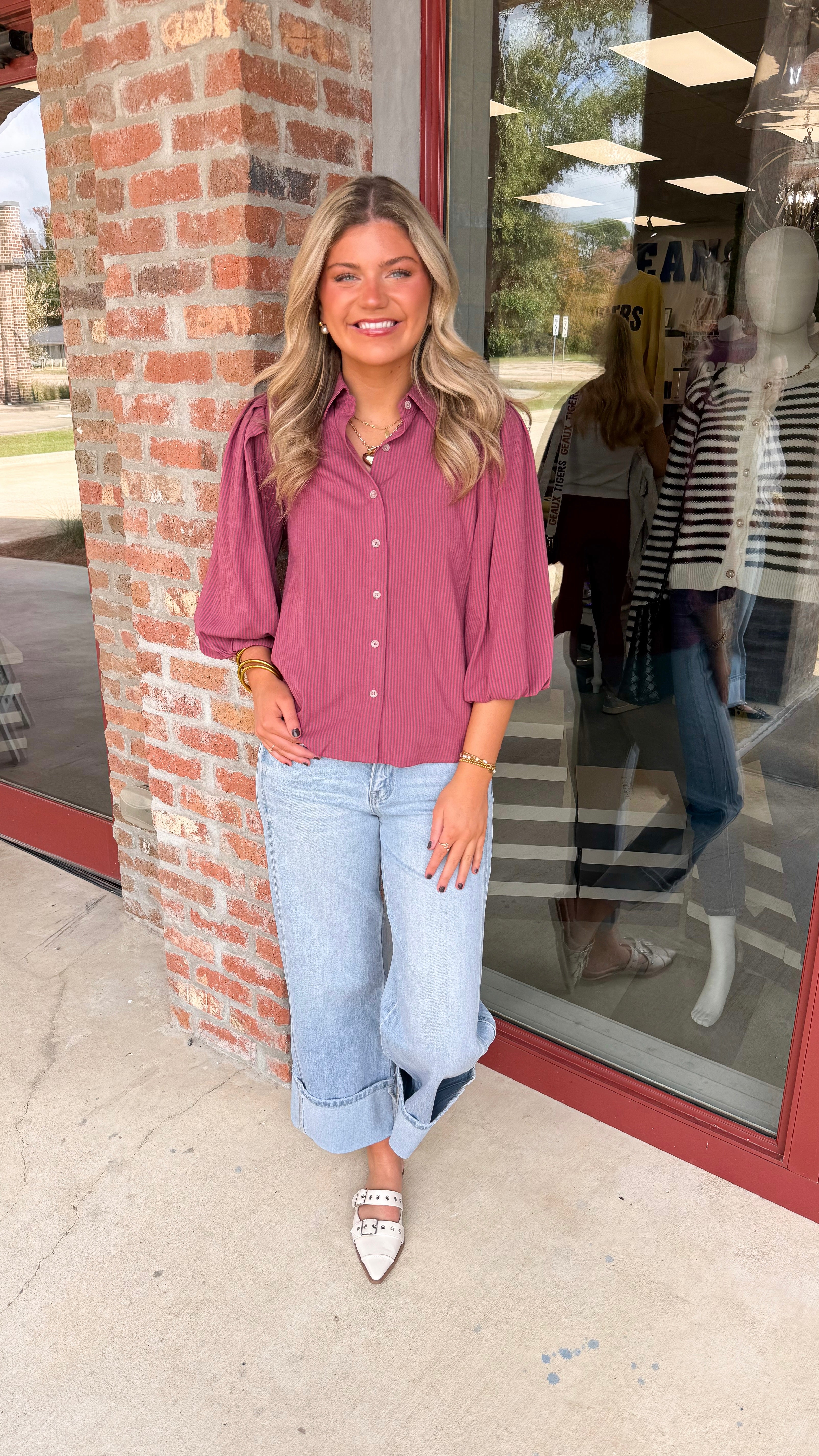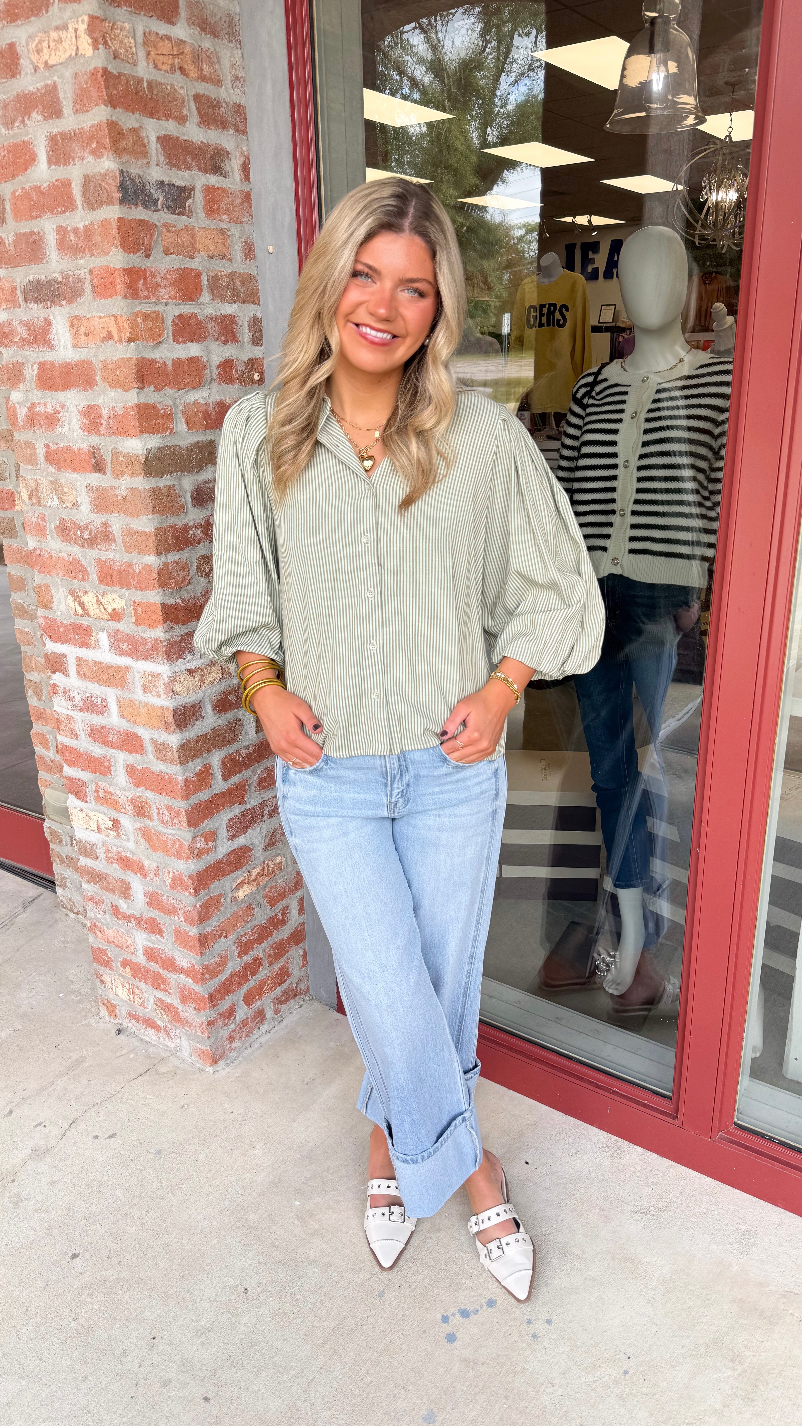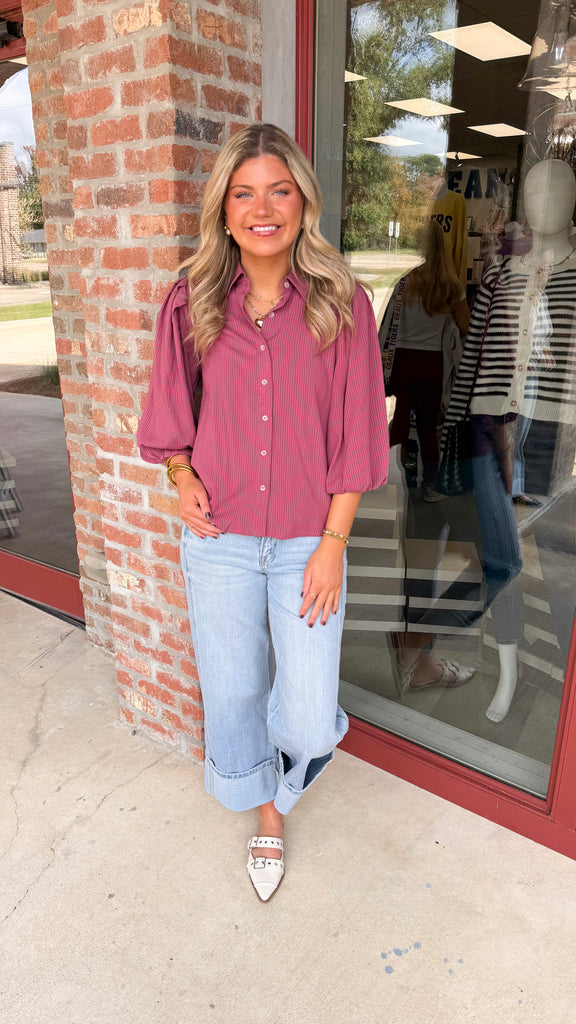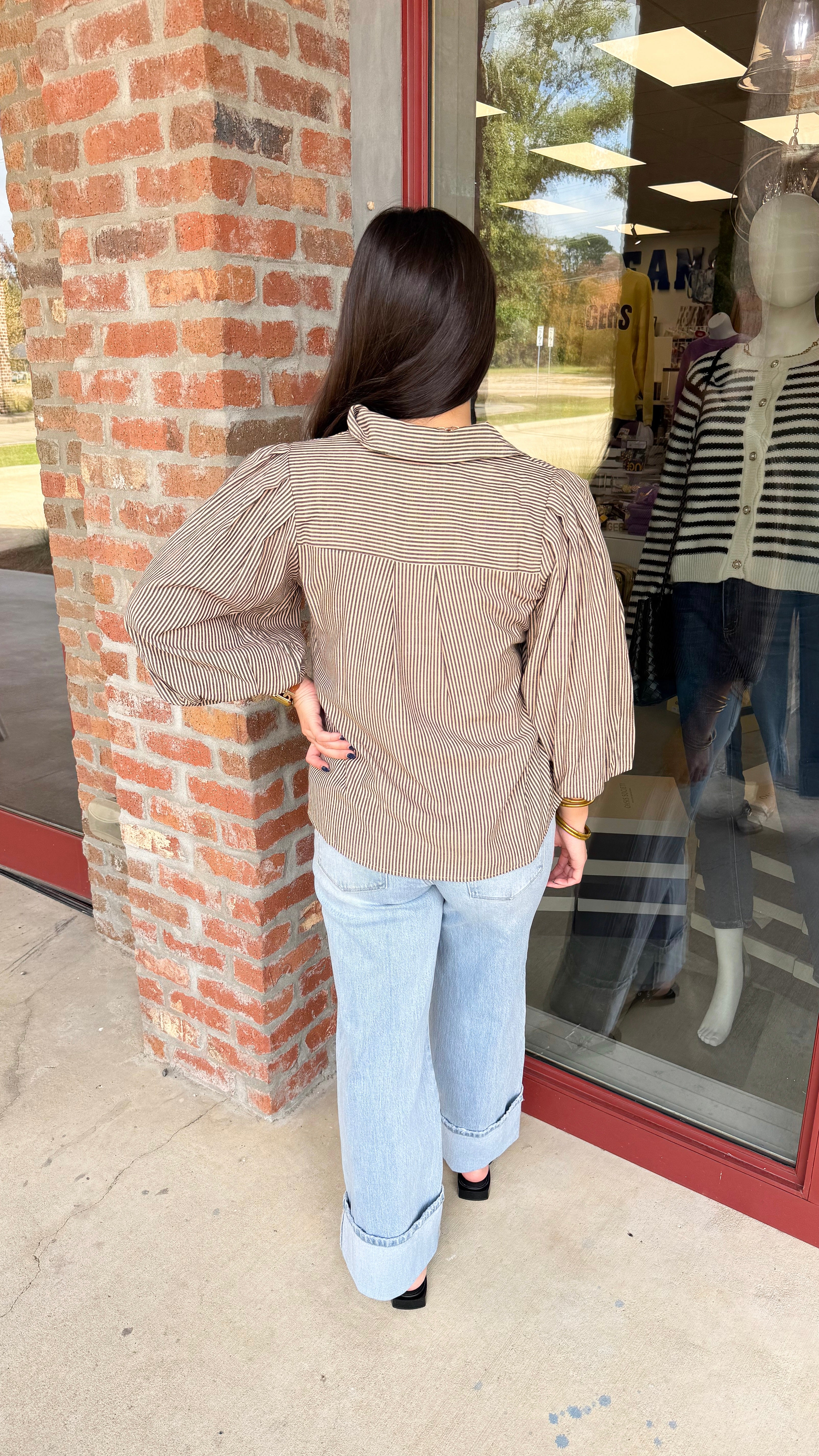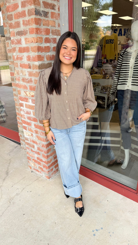 "Let You Go" Stripe Button Down Long Sleeve Top