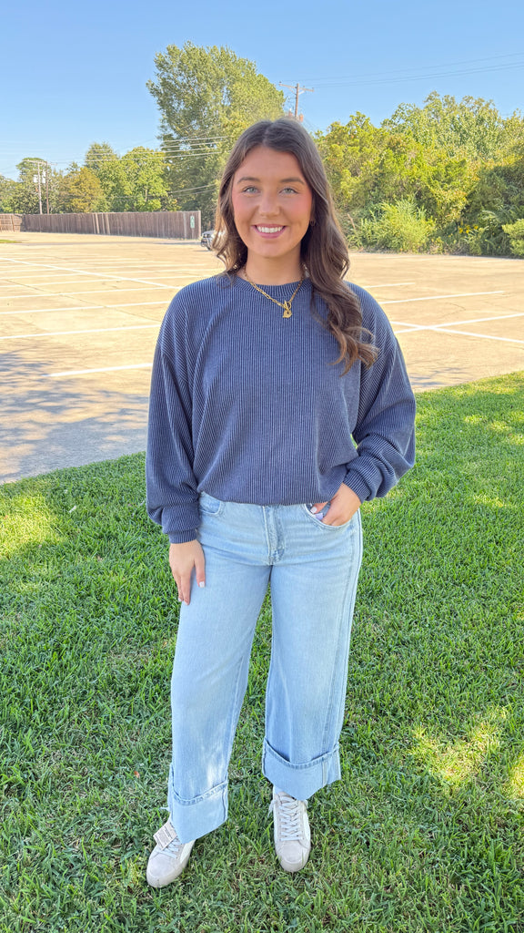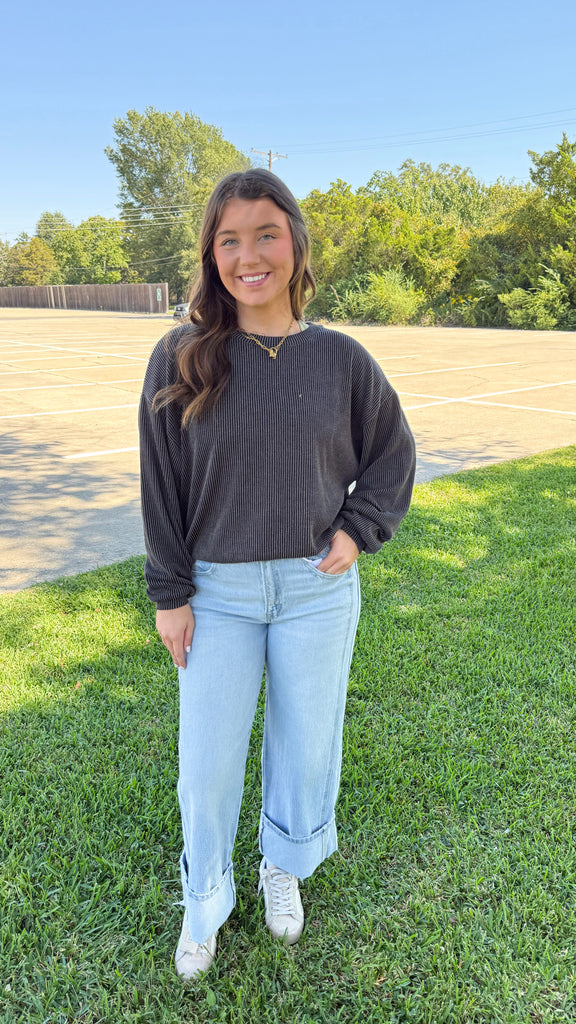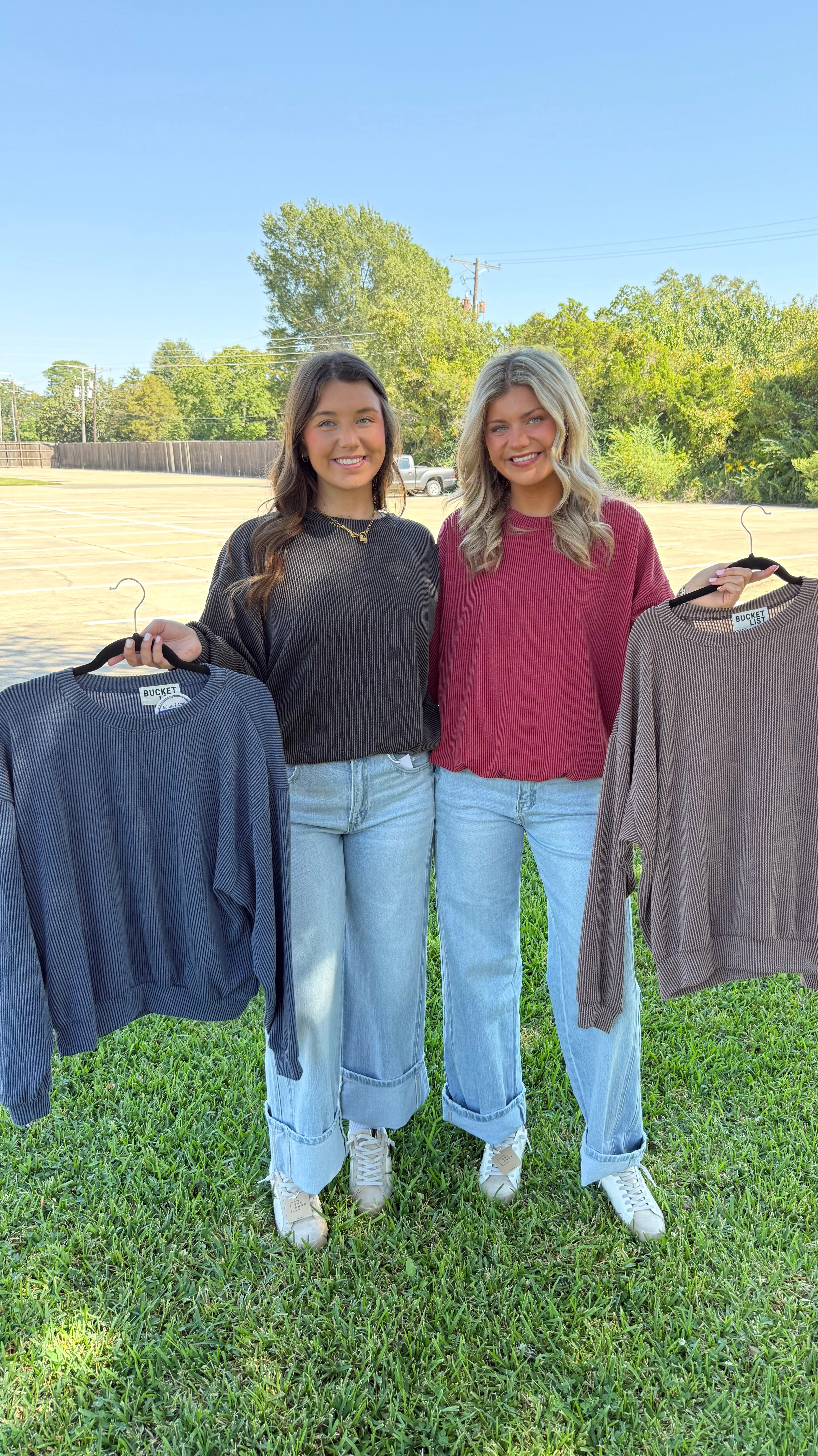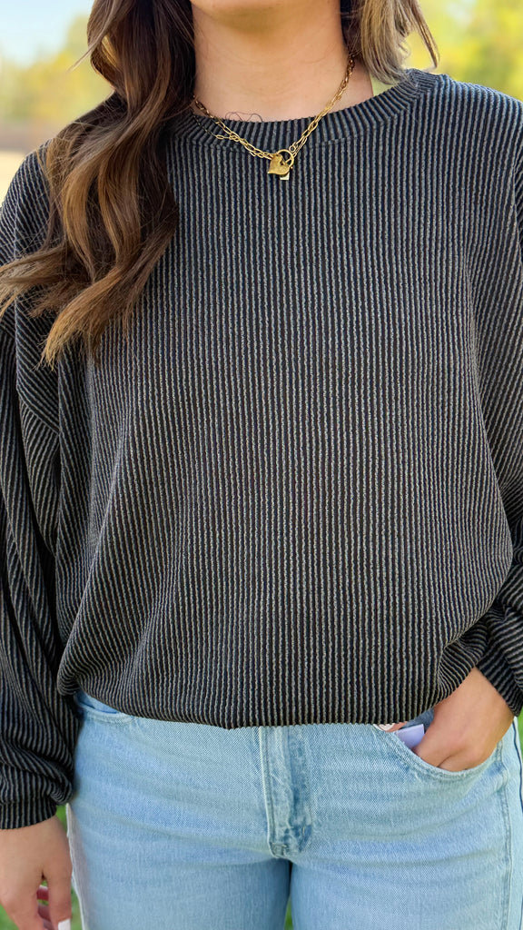 "Let's Get Lazy" Striped Textured Knit Comfy Sweatshirt