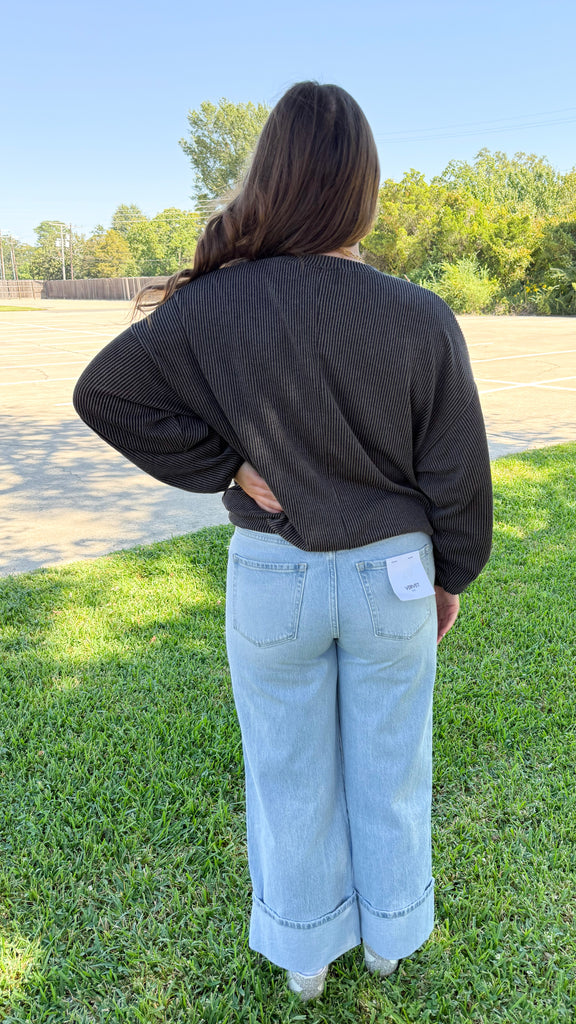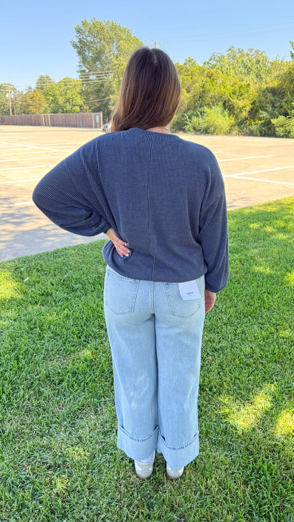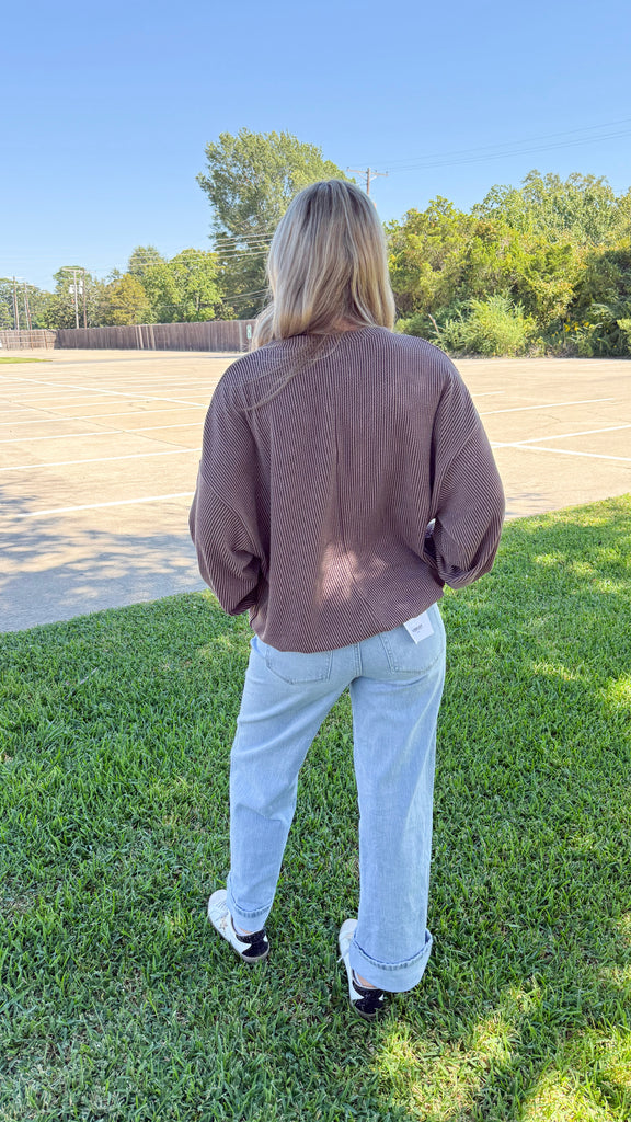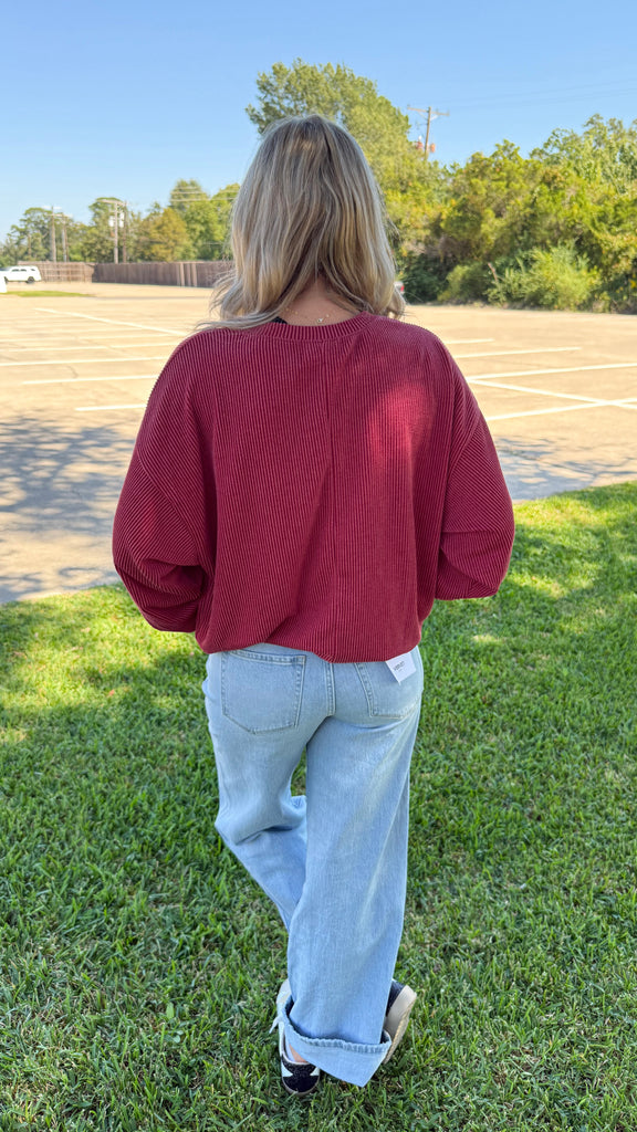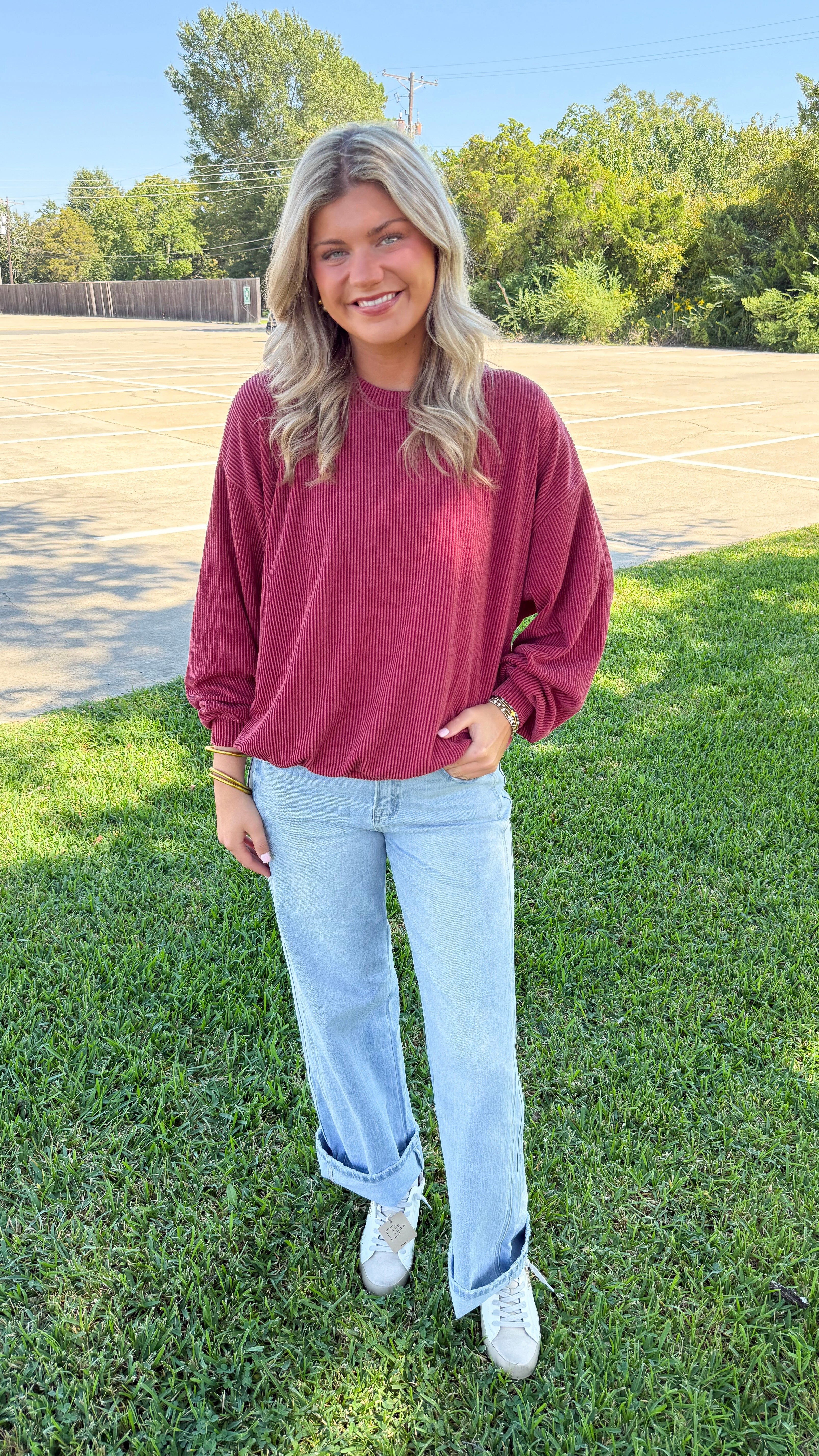 "Let's Get Lazy" Striped Textured Knit Comfy Sweatshirt
