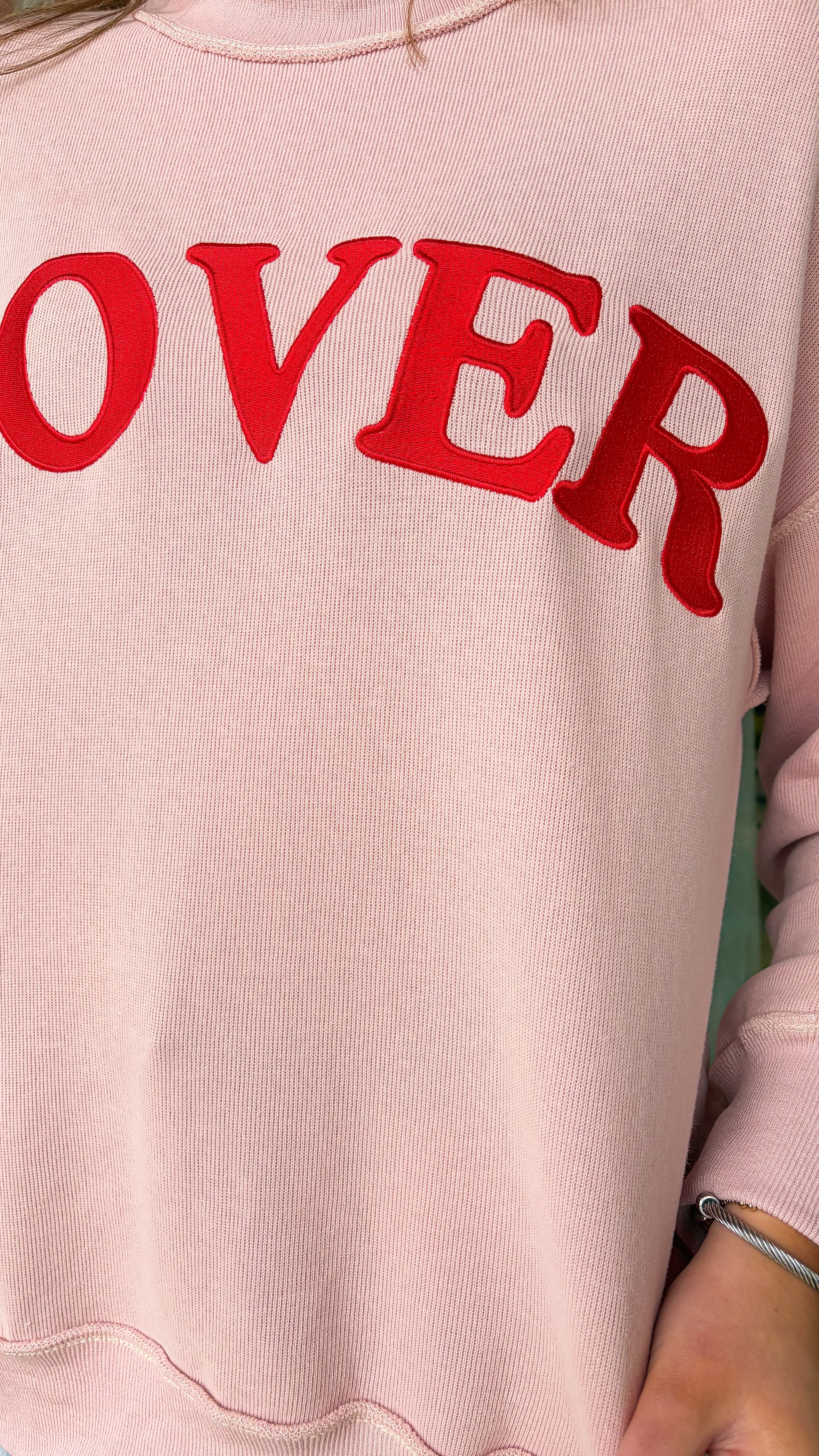 "Lover" Pink Embroidered Mock Neck Sweatshirt