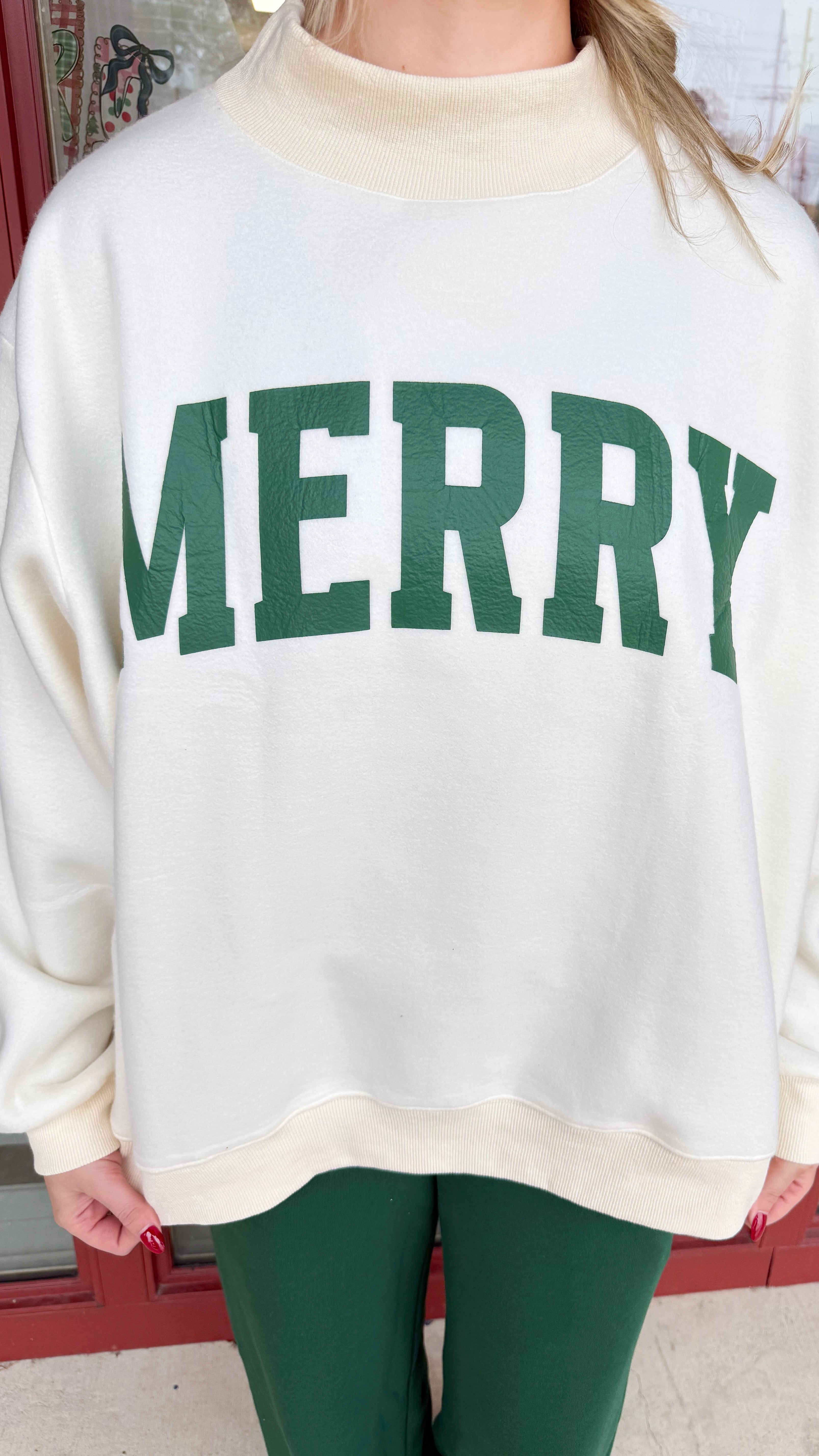 "Merry Christmas" Reversible Mock Neck Sweatshirt