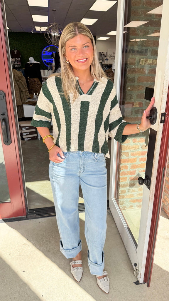 "More Than Wishes" V Neck Striped Sweater Top