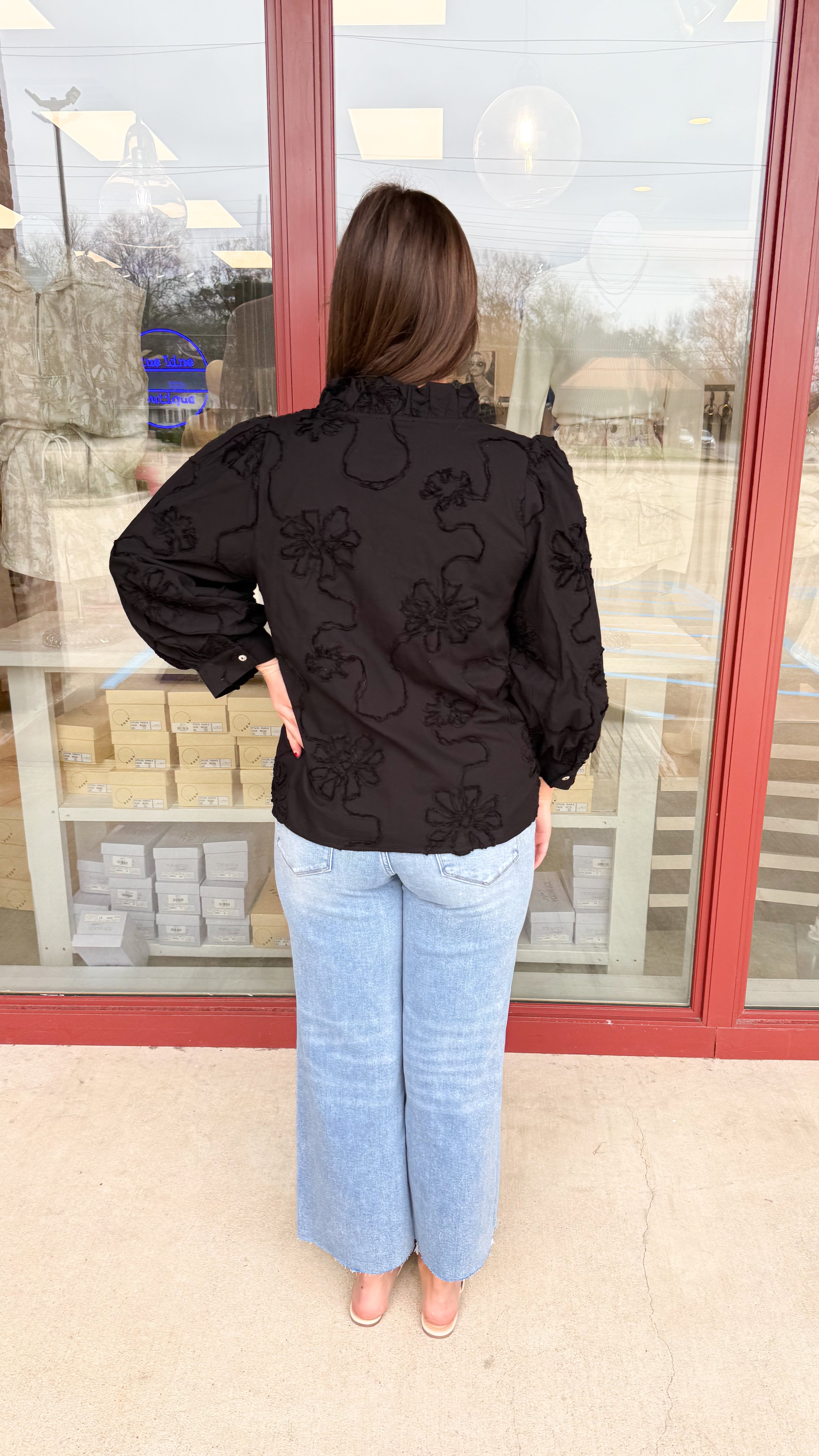 - Ruffled Neckline