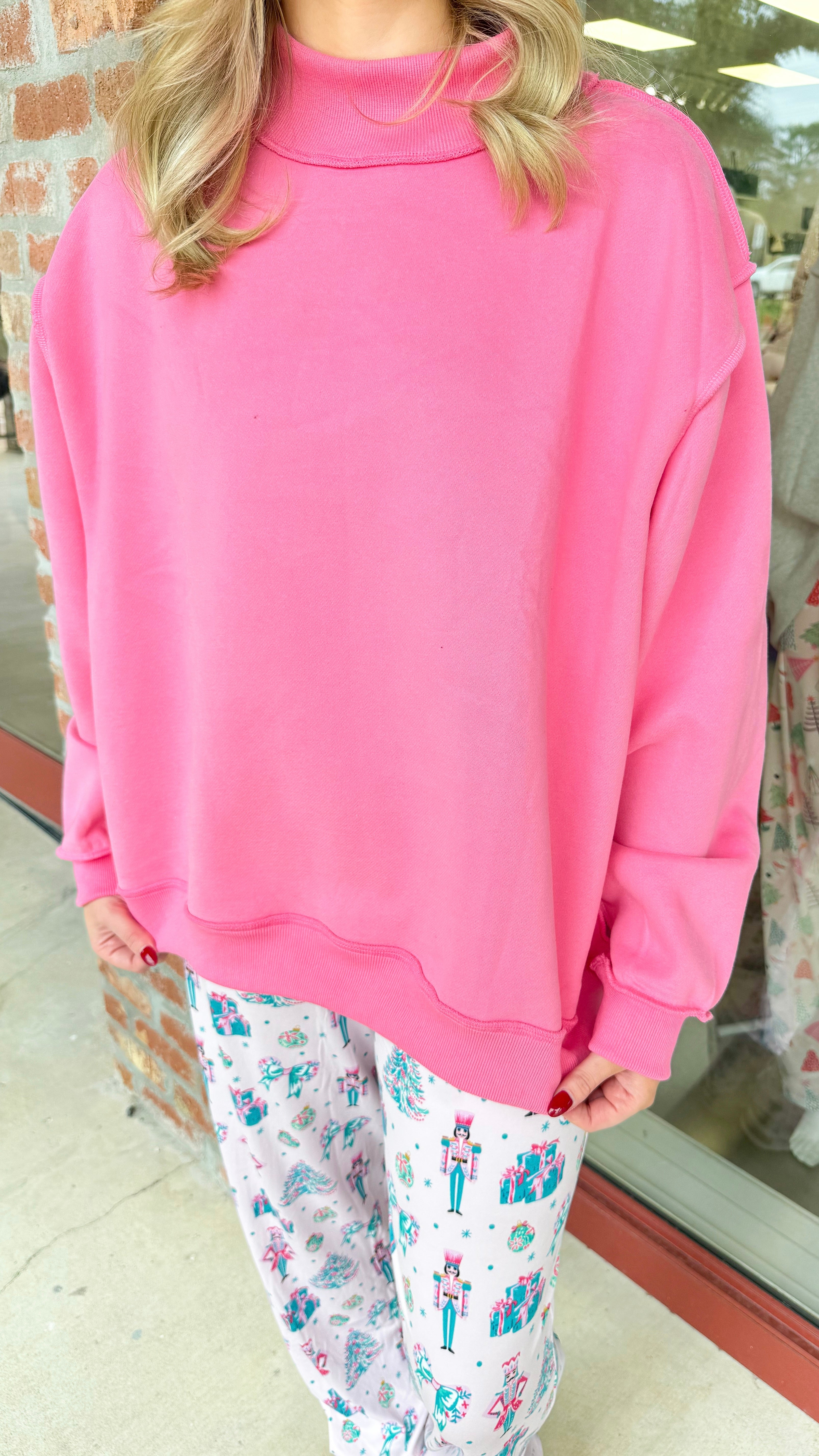 "Same Timeline" Solid Reversible Mock Neck Sweatshirt