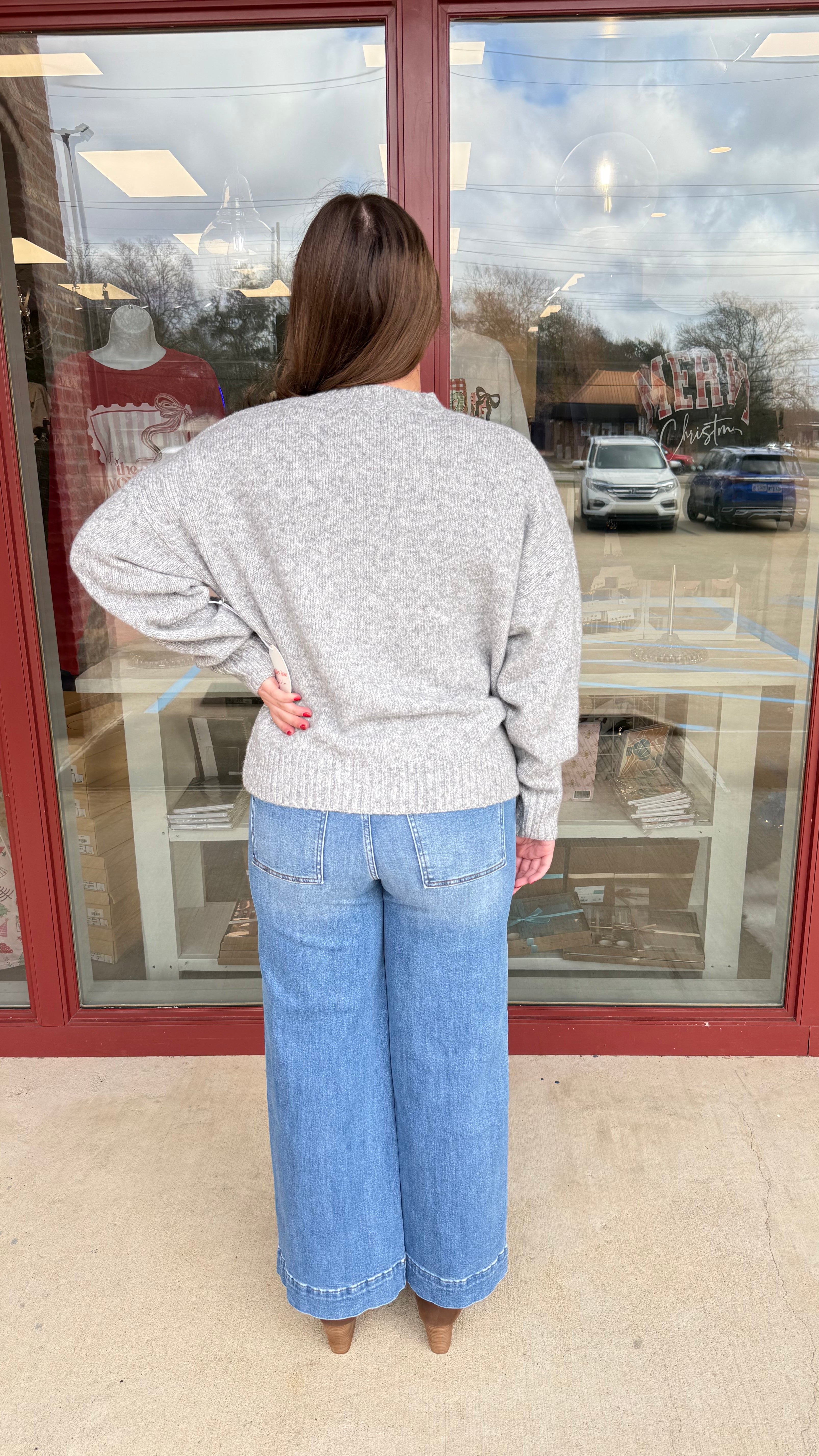 "Wearing Comfort" Embroidered Graphic Knit Long Sleeve Sweater