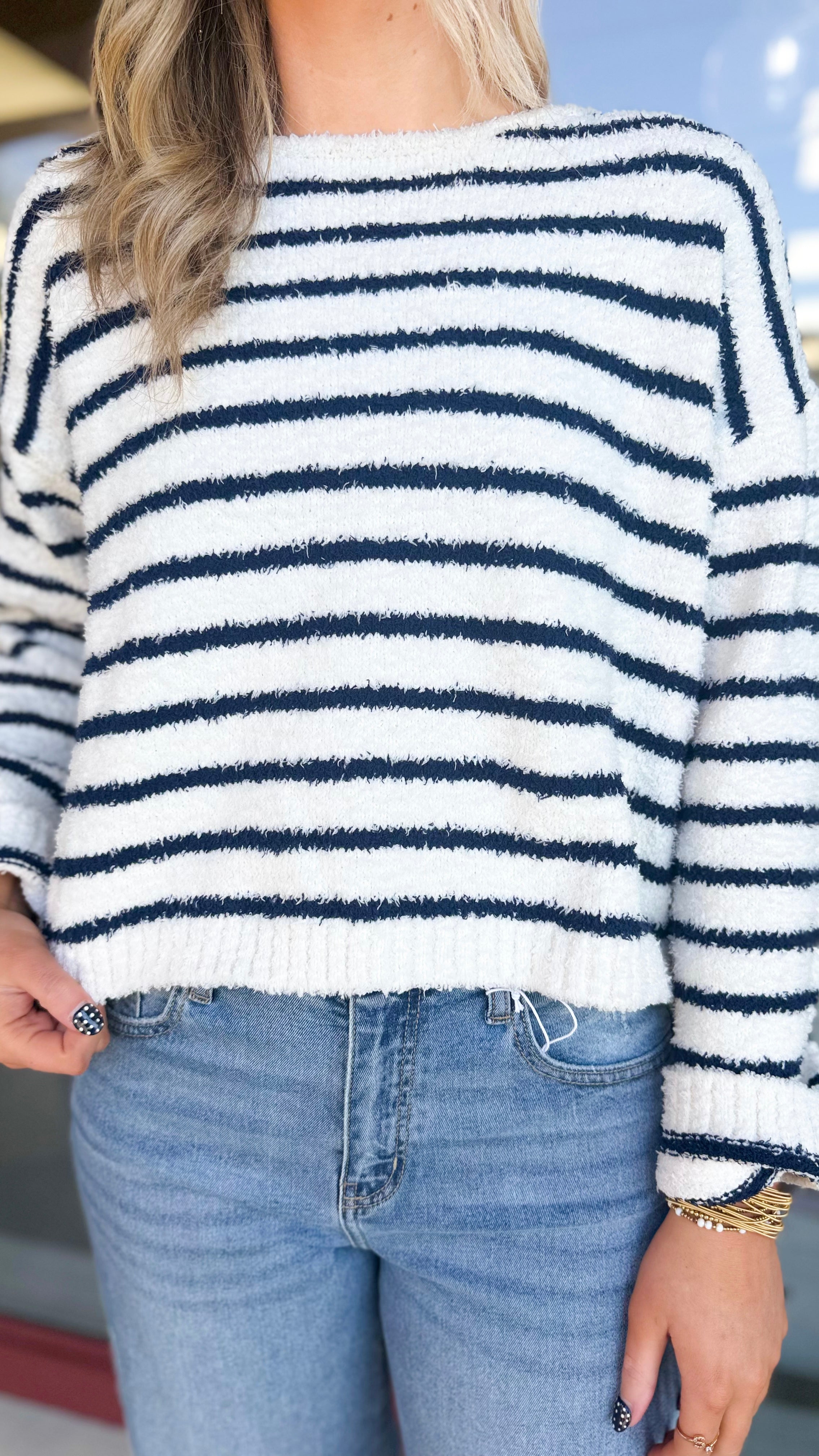 "When In Doubt" Striped Knit Long Sleeve Sweater Top