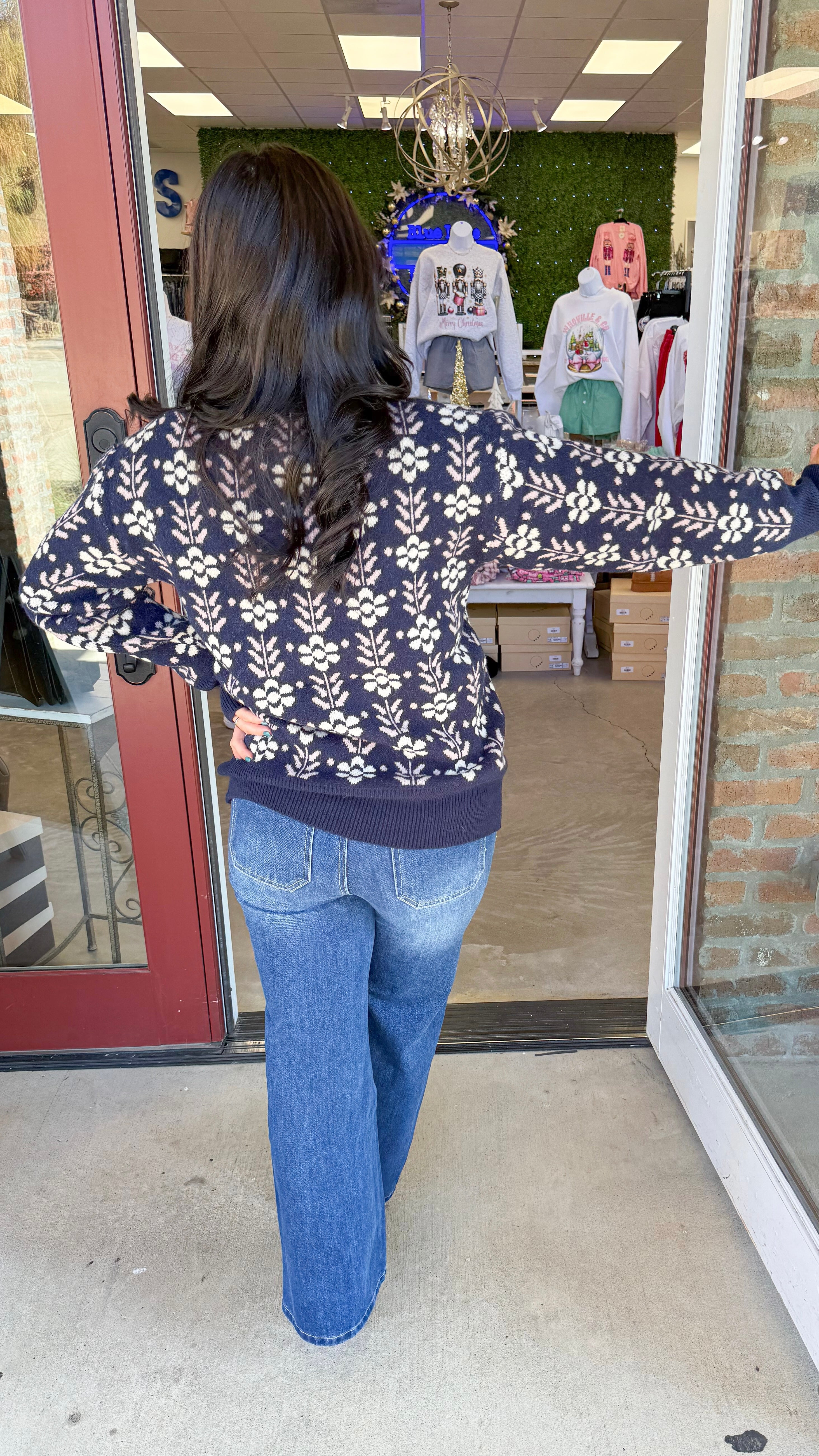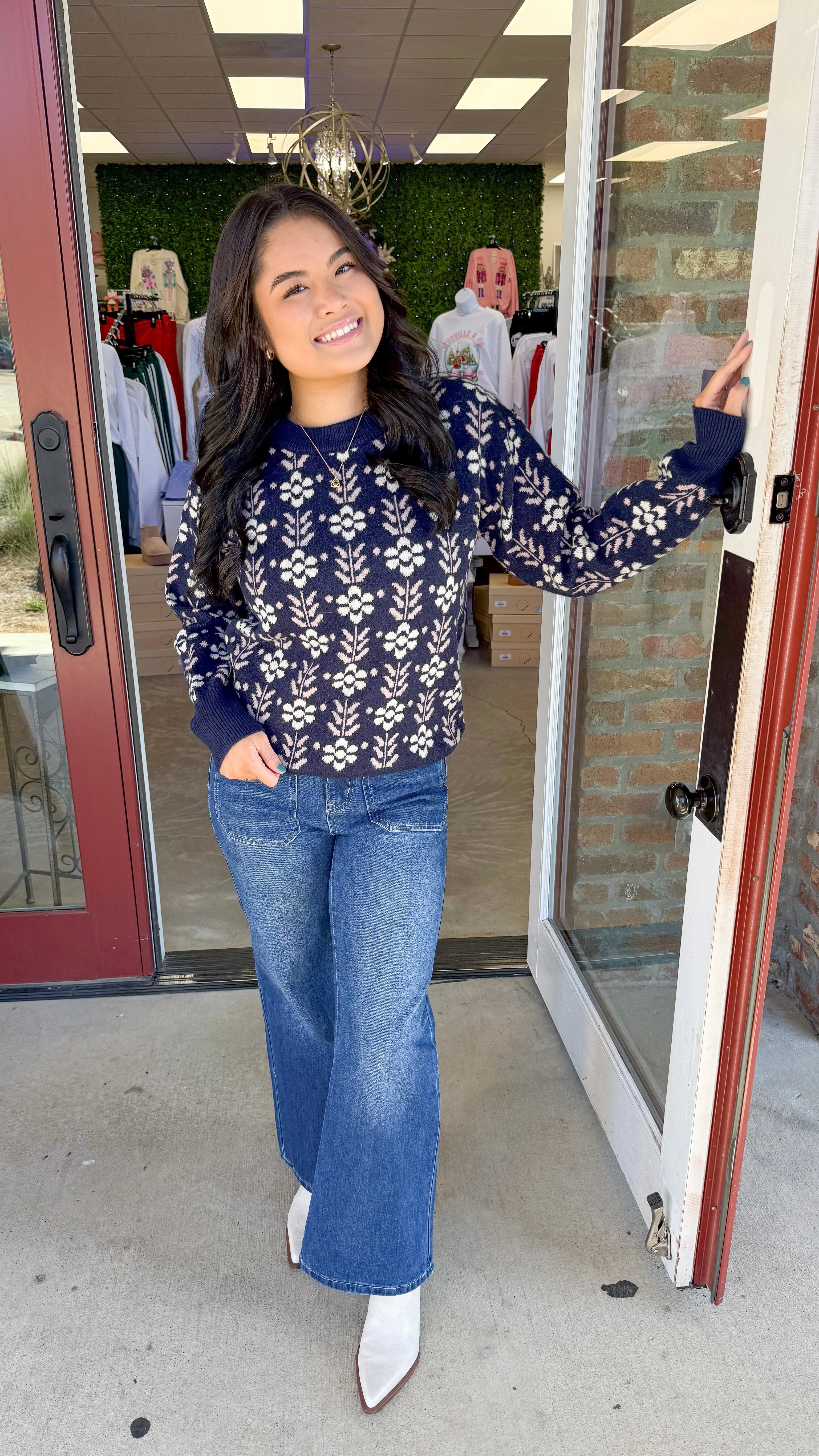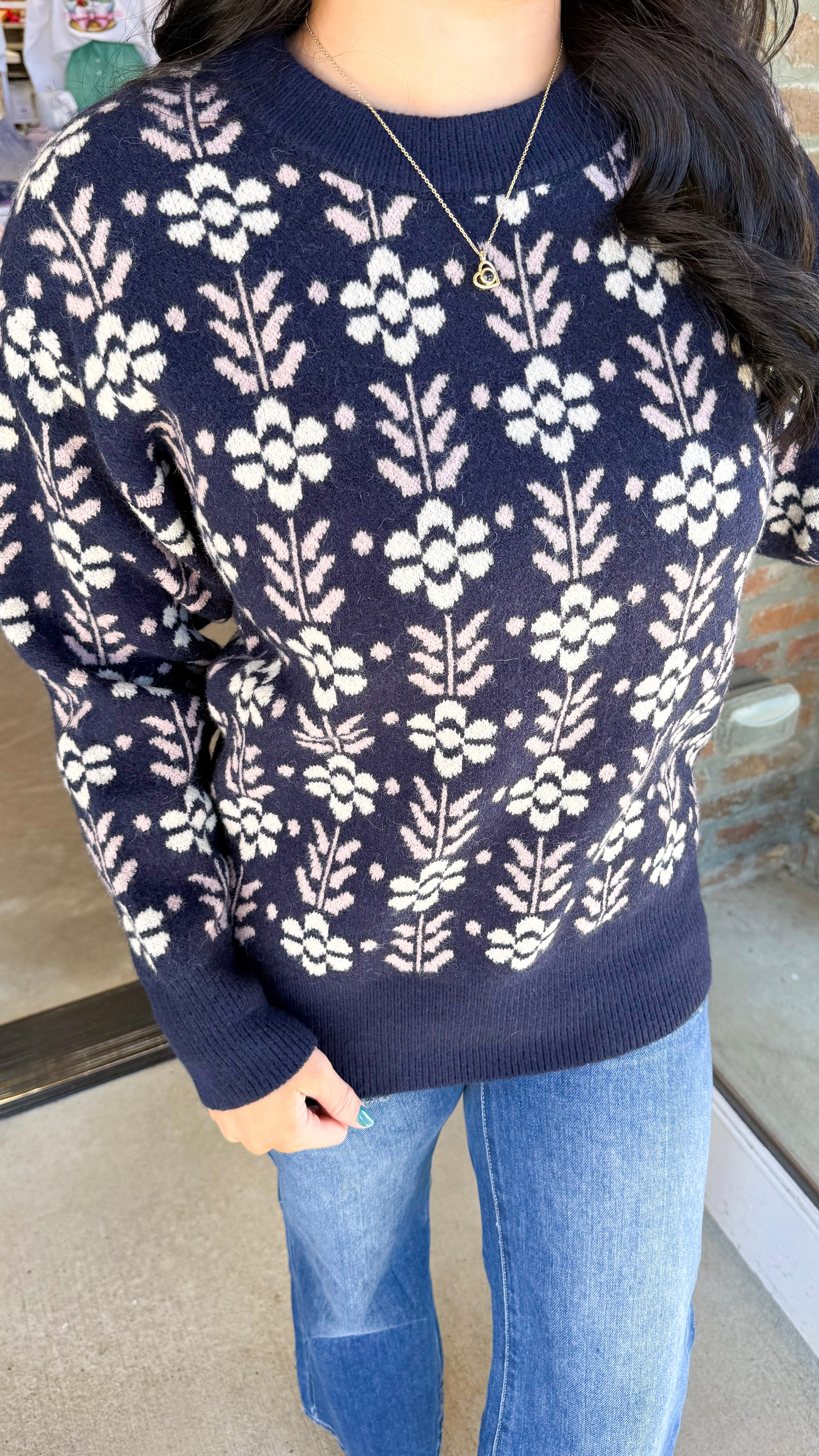 "You Know Better" Vintage Flower Pattern Crew Neck Knit Sweater