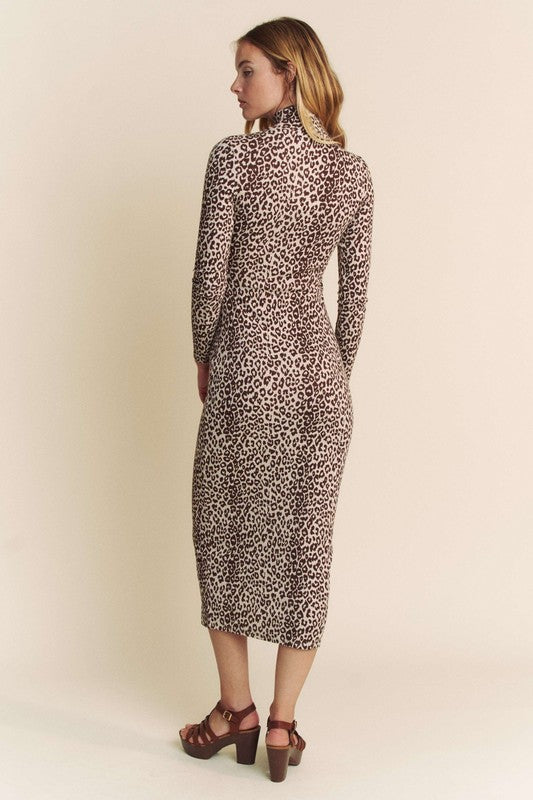 "Everything Nice" Mock Neck Animal Print Tight Midi Dress