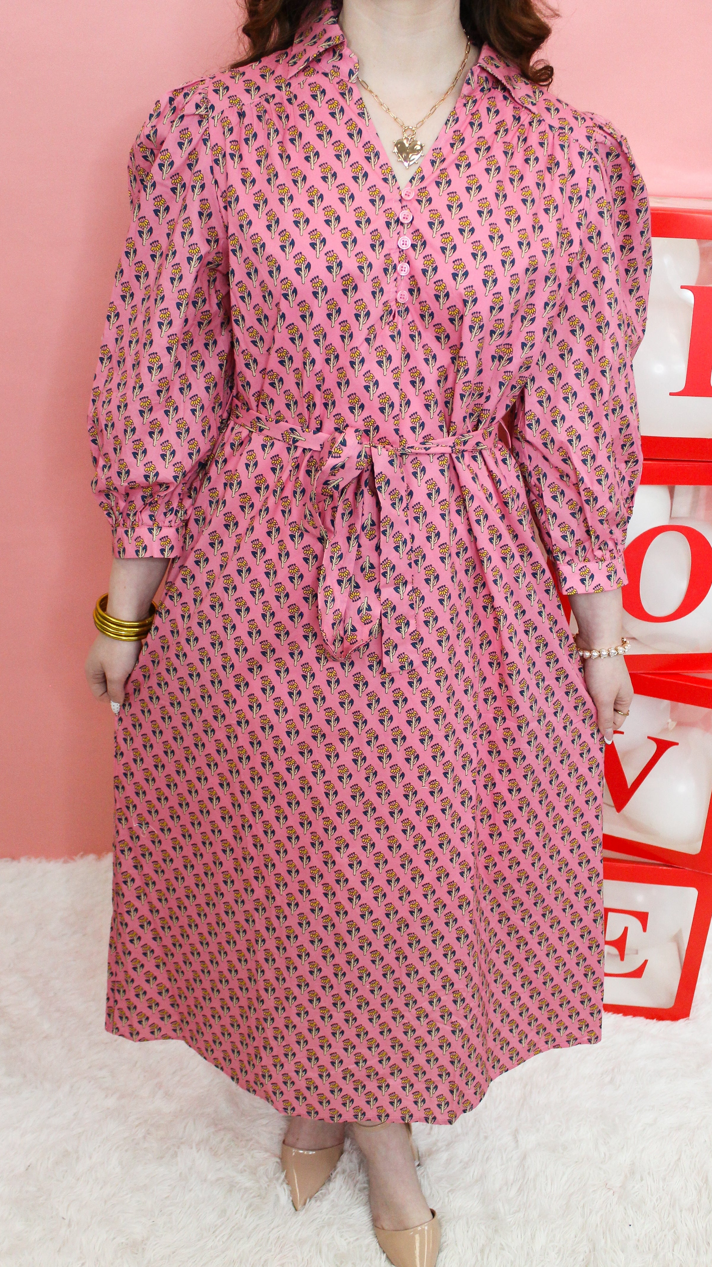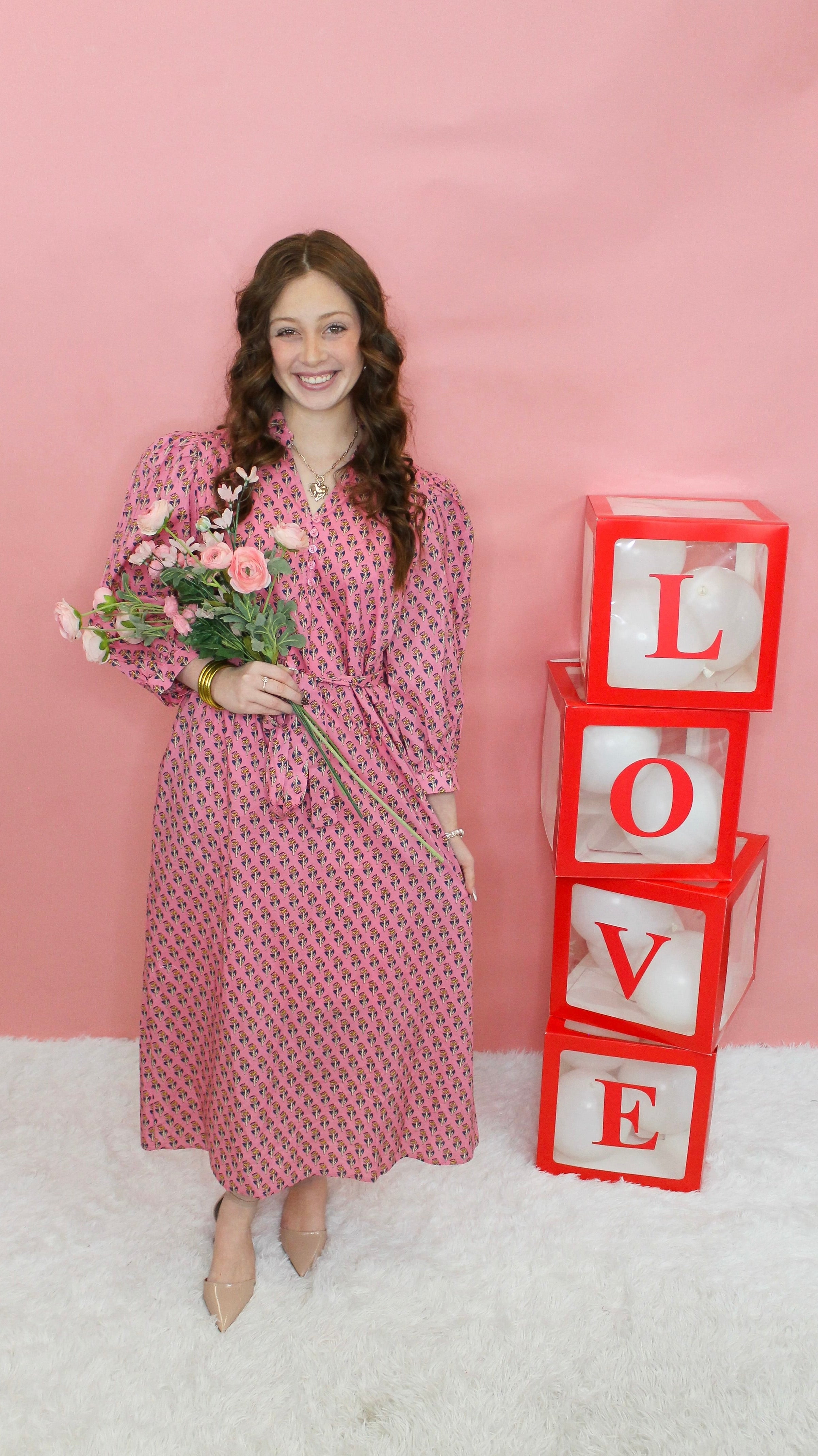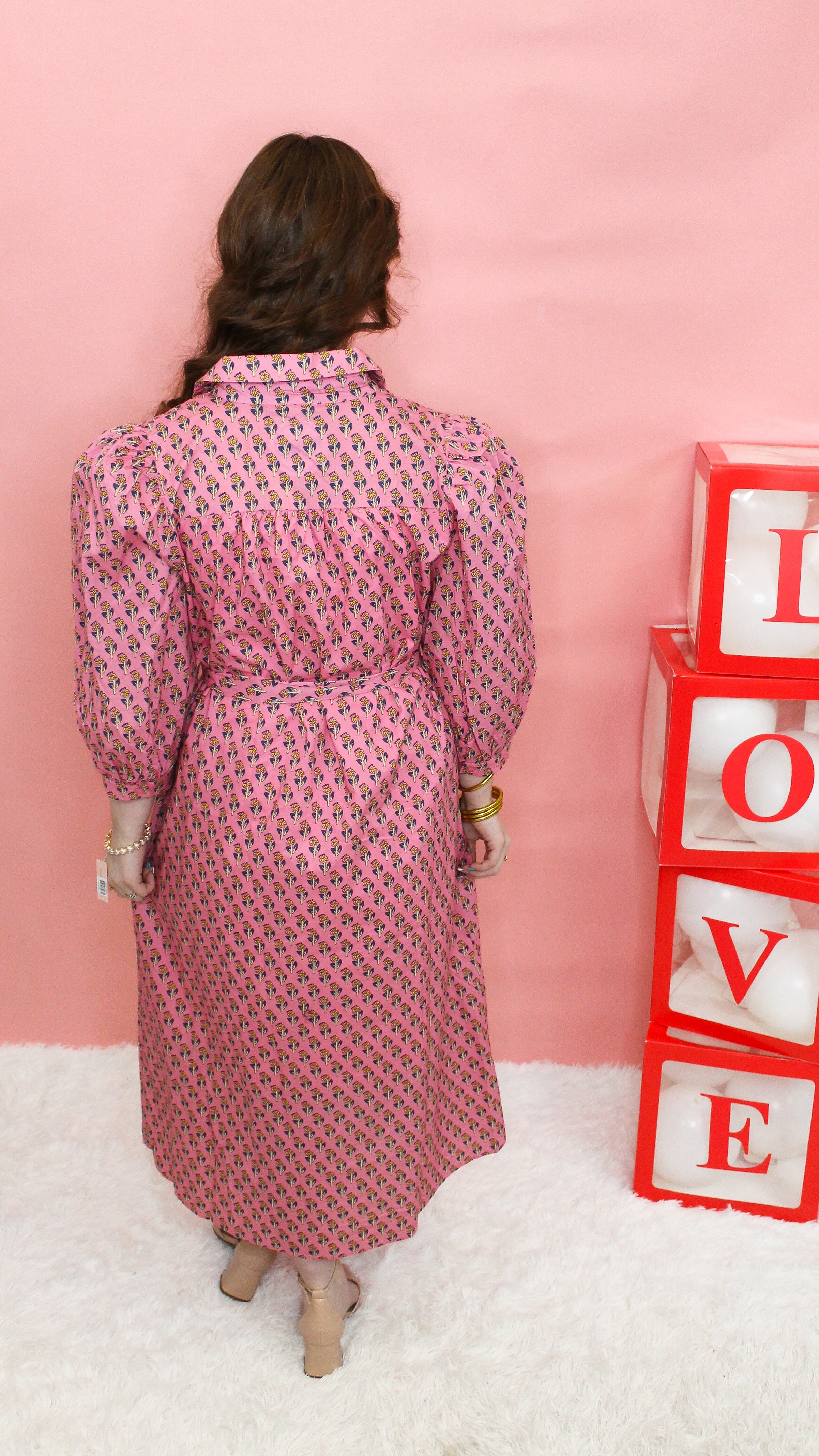 "Through The Florals" Button Up Waist Tie Floral Midi Dress