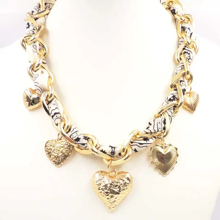 "Anywhere Now" Gold Link Wrapped Charm Scarf Necklace