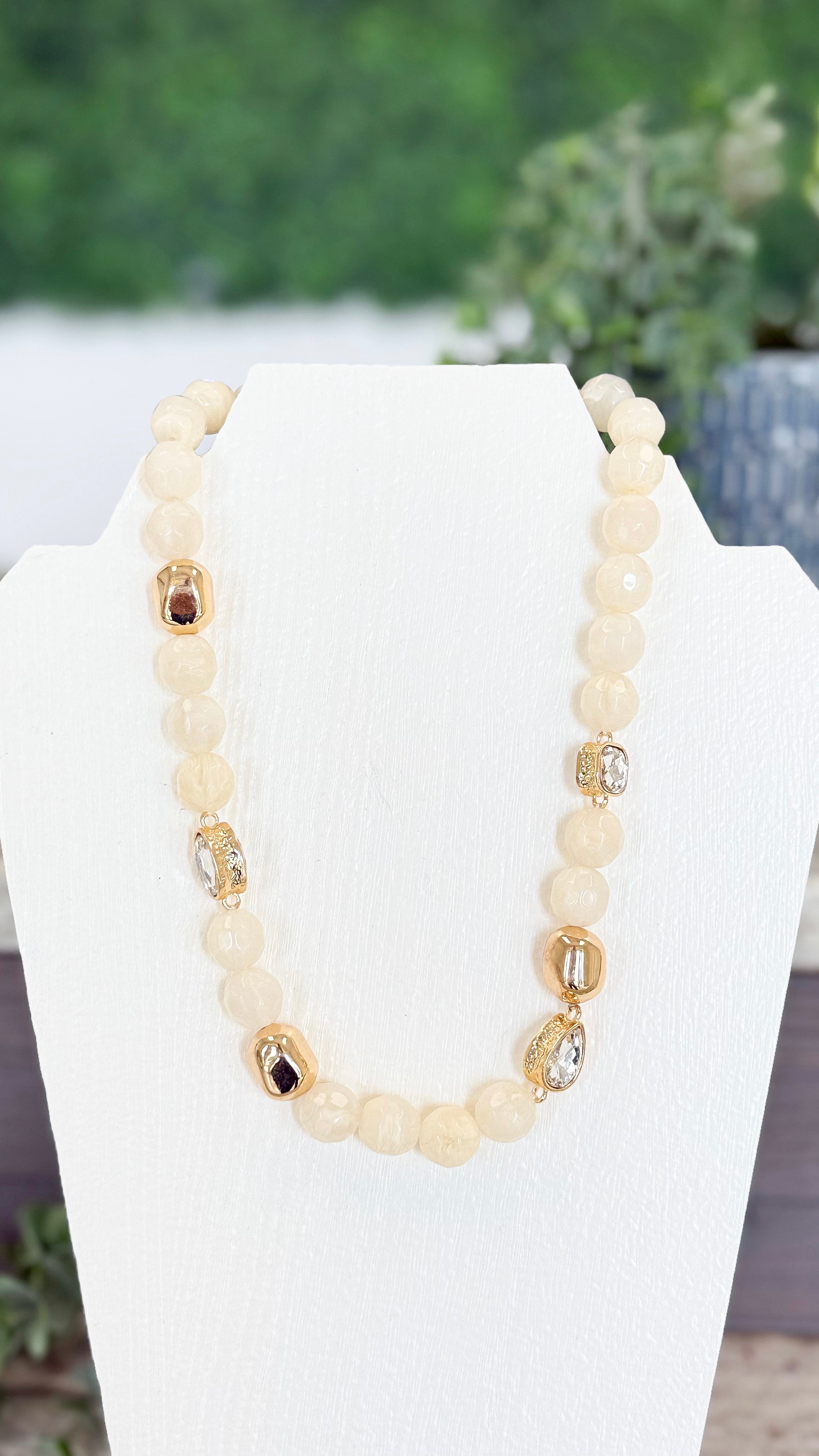 Cream Stone and Gold with Rhinestone Accent Necklace