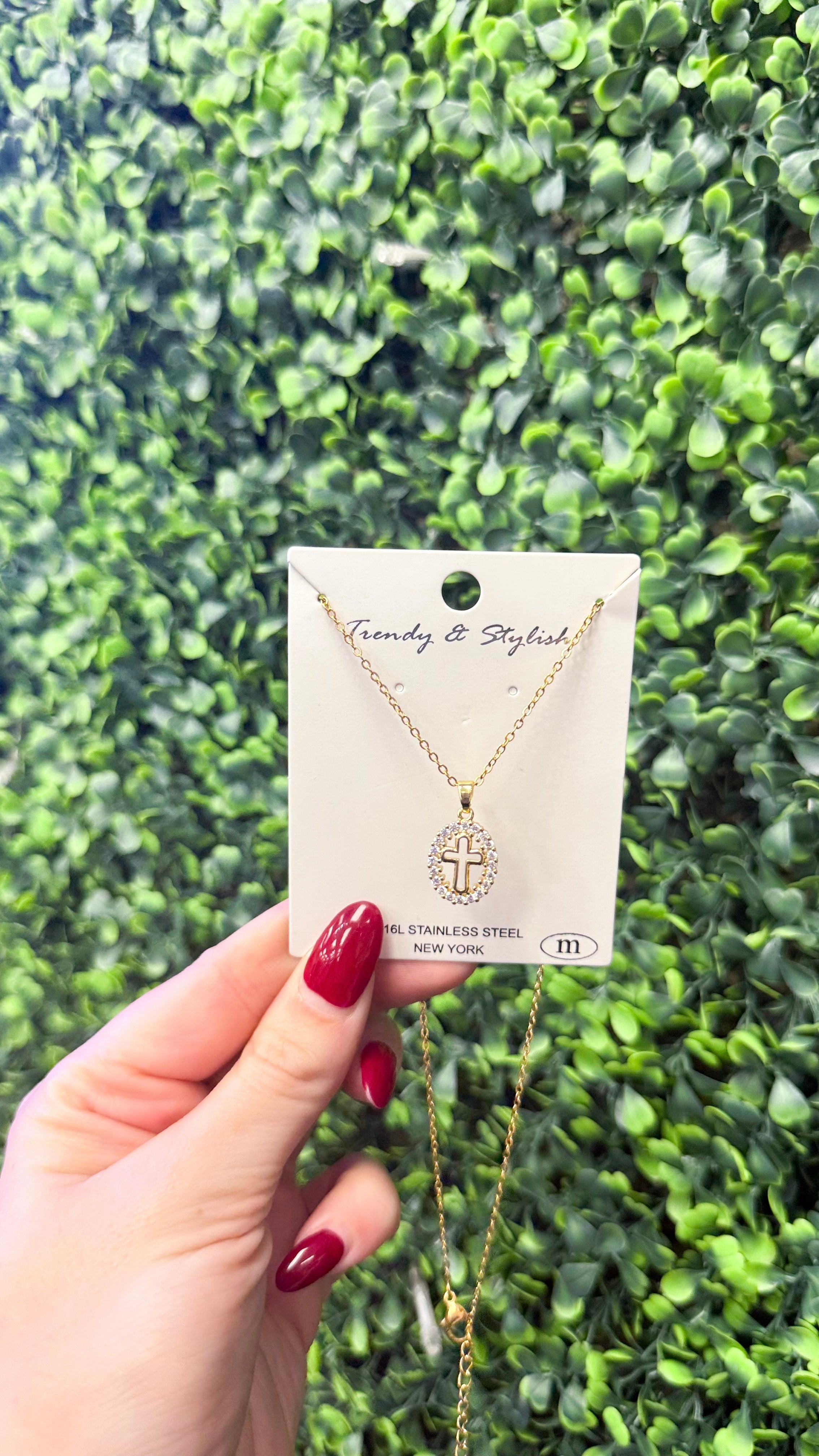 "Grace On Repeat" Cross Oval Pendant Gold Necklace