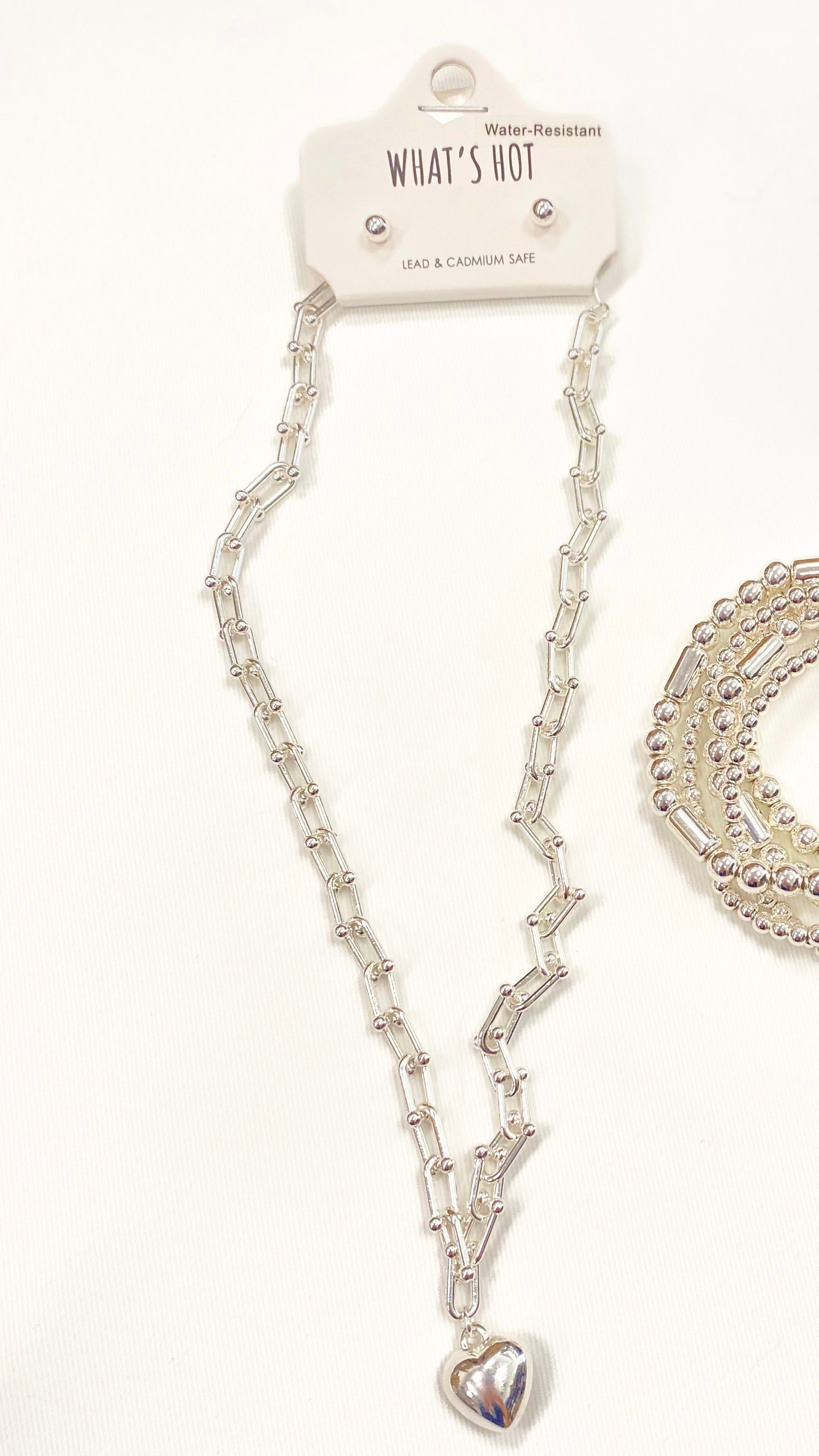 Water Resistant Silver Chain Necklace With Heart Pendant