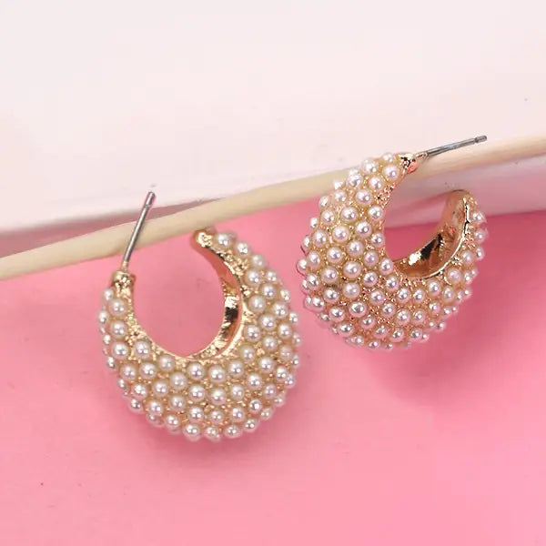 "Be Fearless" Pearl Half Moon Huggie Hoop Earrings