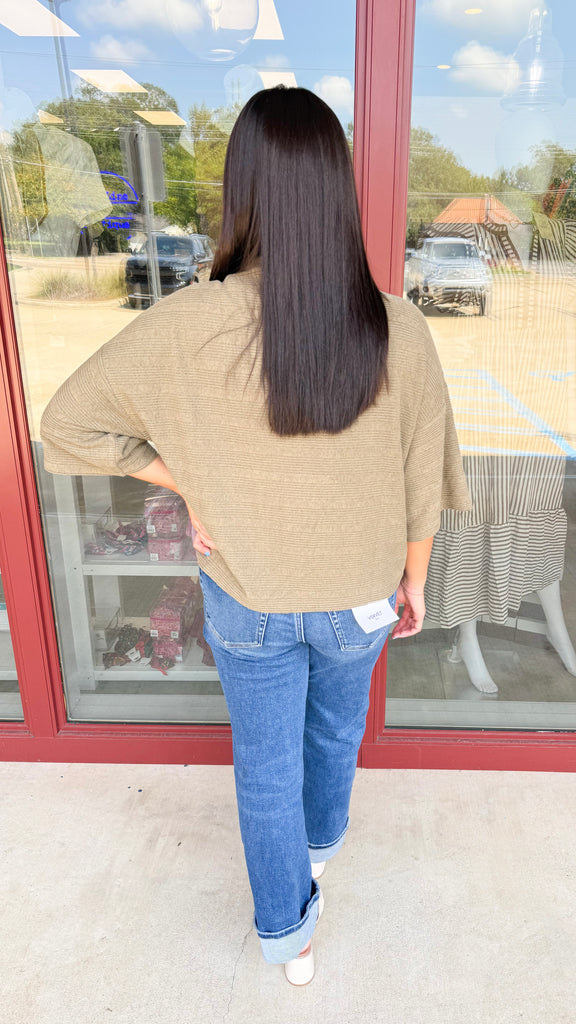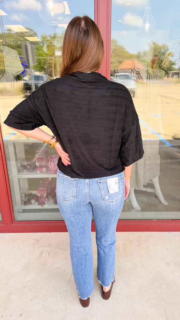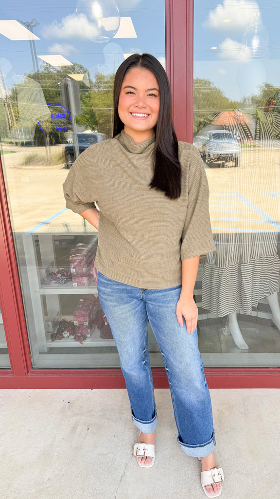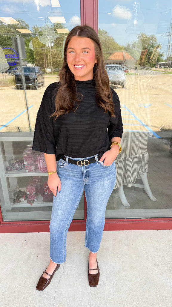 "Best Of It All" Textured Mock Neck Half Sleeve Top