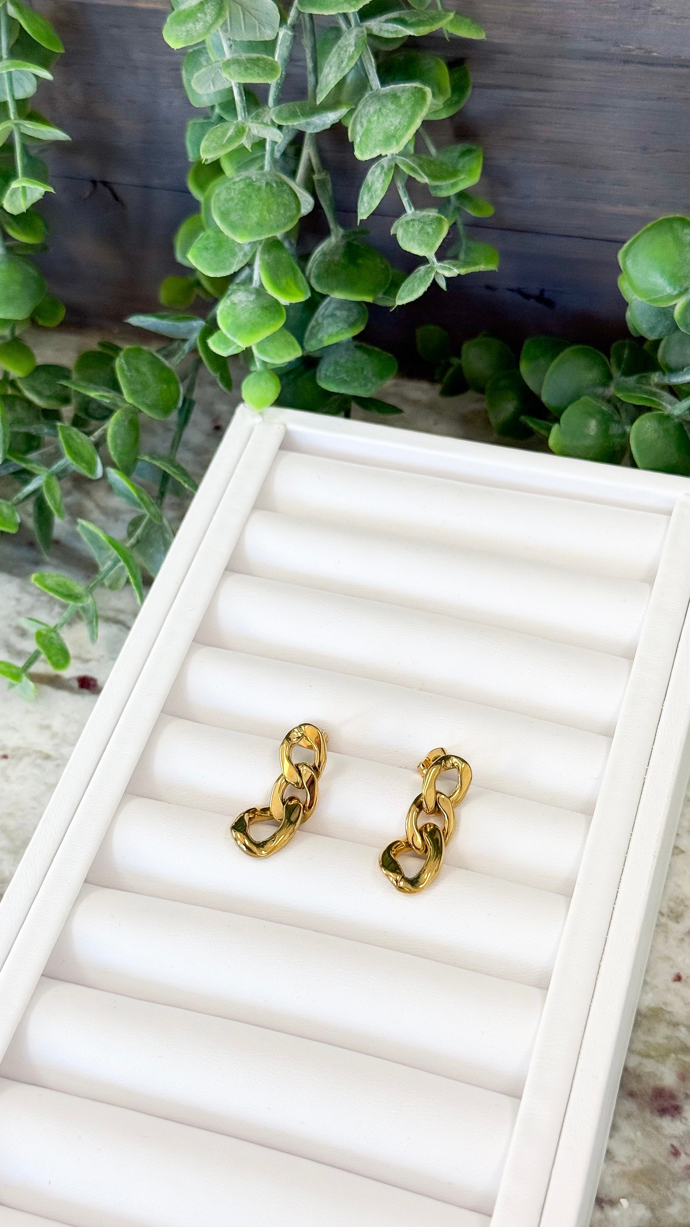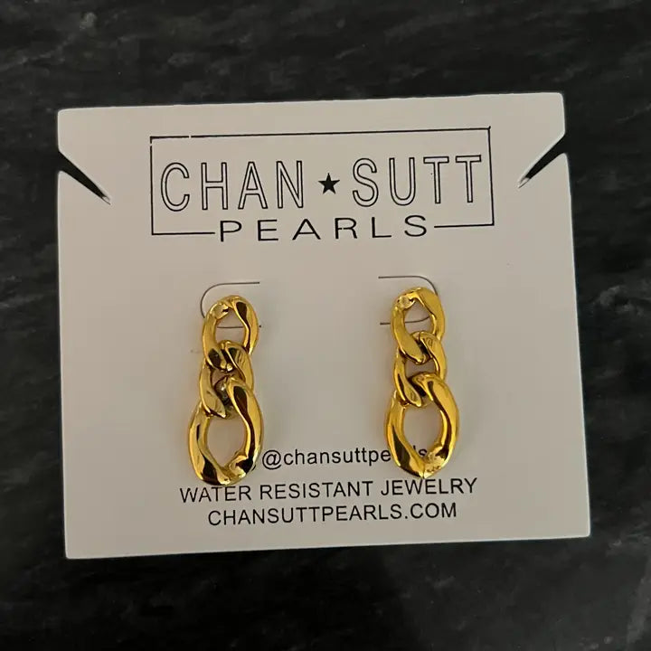 These gold paperclip dangle huggie earrings from Chansuttpearls are a perfect blend of style and durability. These huggie earrings are lightweight and water-resistant, and pairs perfect with any outfit.