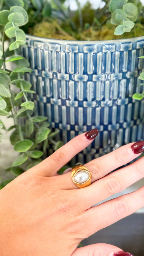 Chansutt "Greer" Pearl Pendant Gold Chunky Ring