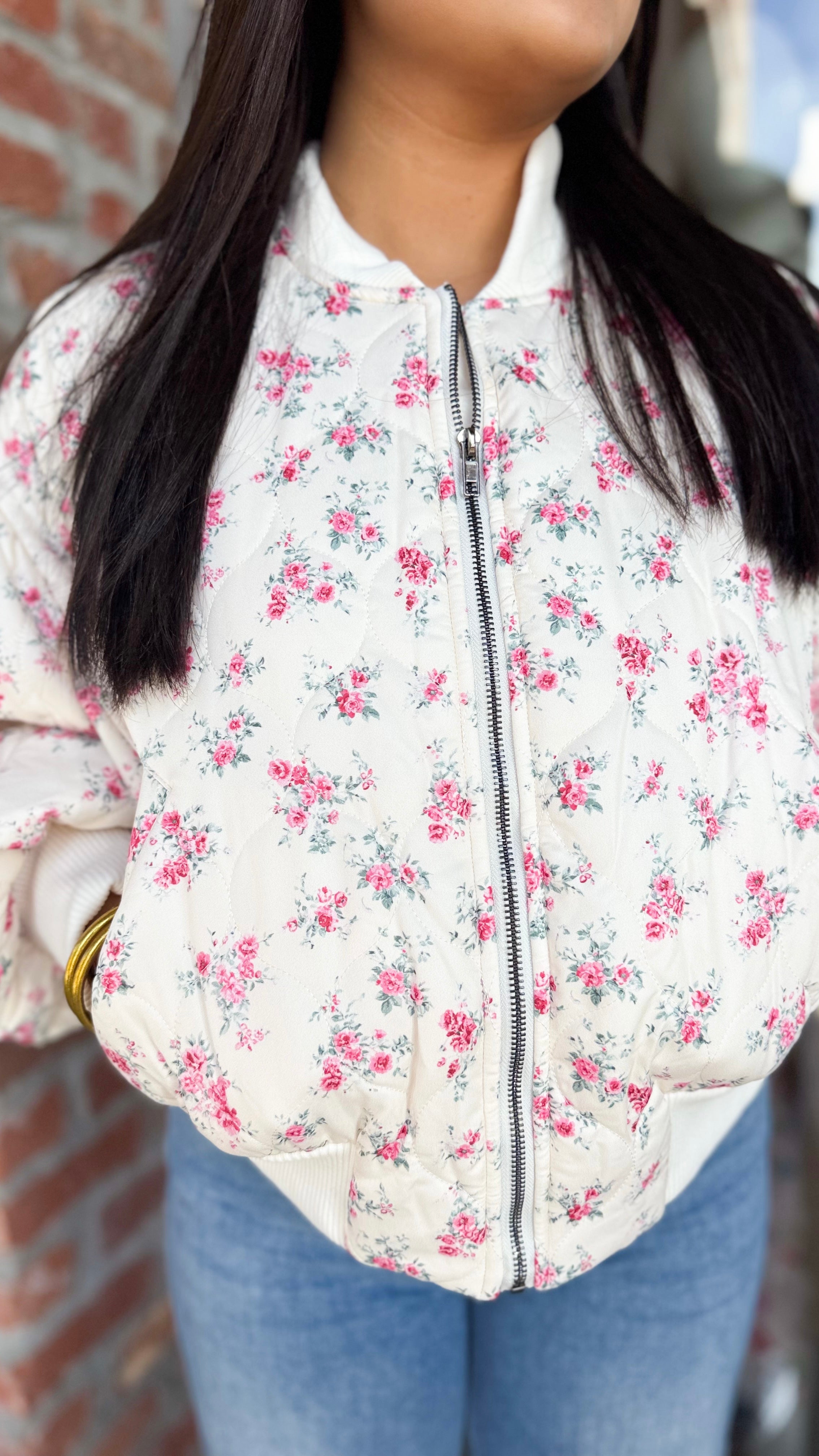 "Confidence Looks Good" Floral Print Oversized Bomber Jacket